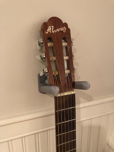 Deze hanger is ontworpen voor een klassieke gitaar met een hals van 57 mm bij de topkam. Aanpassingen zijn eenvoudig omdat het een stalen vijl is.