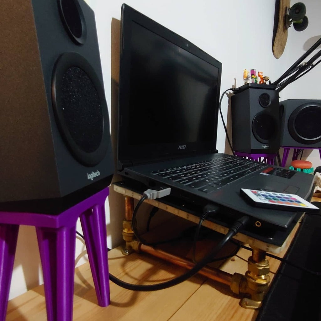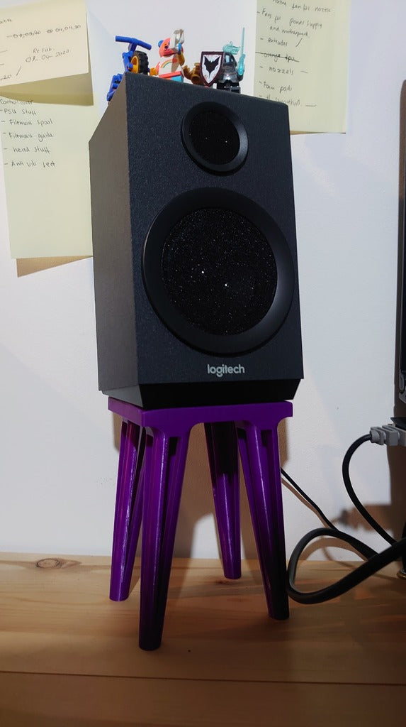Een set luidsprekerstandaarden die speciaal zijn ontworpen voor de Logitech-speakers op de eerste afbeelding. Mogelijk moet u de afmetingen van de onderkant controleren om er zeker van te zijn dat deze overeenkomen met die van u.
