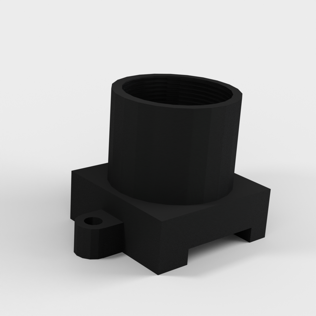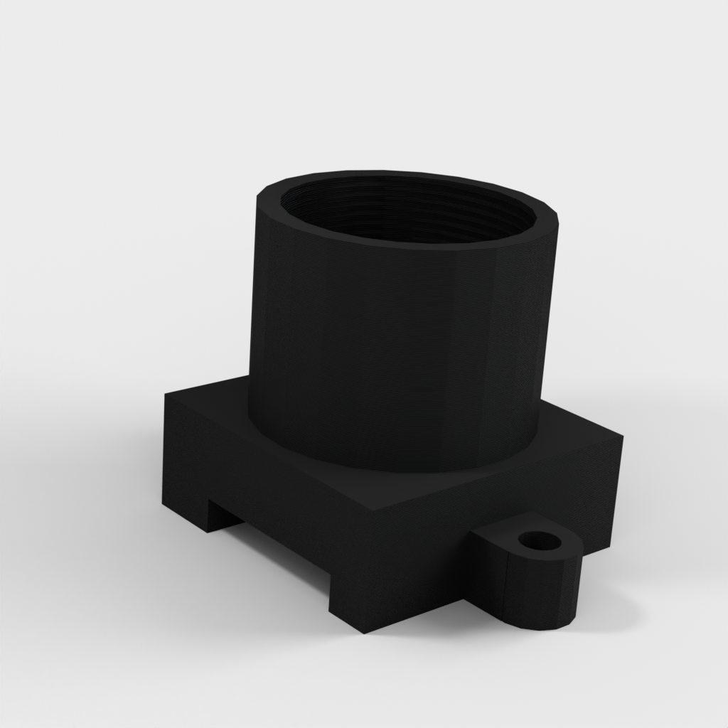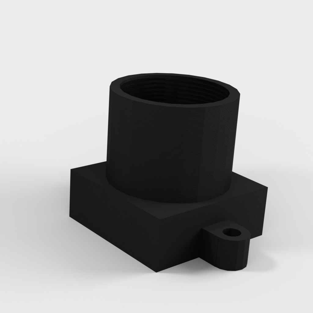 Dit is een M12-montage voor een Raspberry Pi V2-camera. De montage is aangepast om te passen bij de unieke constructie van de Pi V2-camera, waarbij de connector is verschoven ten opzichte van de V1-camera. Na het printen en reinigen van de steunen past deze montage perfect op de camera.