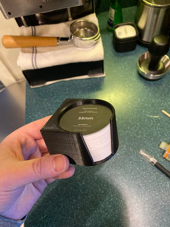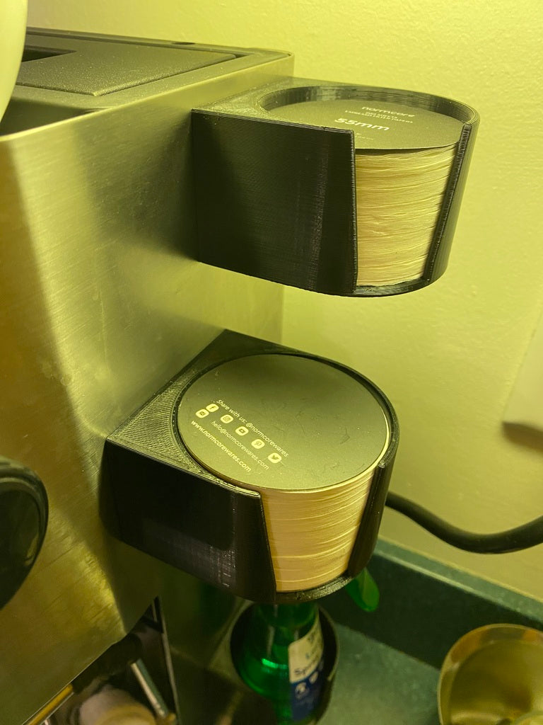 De magnetische espressofilterhouders zijn ontworpen om een praktische en georganiseerde oplossing te bieden voor het opbergen van uw espressofilterpapier. Deze houders, die compatibel zijn met zowel 55 mm als 58 mm filters, zorgen ervoor dat uw papieren altijd binnen handbereik zijn wanneer u uw koffie zet. Met een sterke magnetische bevestiging kan de houder eenvoudig op uw espressomachine worden geplaatst, waardoor een opgeruimde en efficiënte werkplek ontstaat. Dit accessoire is een ideale aanvulling op uw koffieapparatuur, inclusief diverse espresso-accessoires, en kan bijdragen aan een meer gestroomlijnd brouwproces, ongeacht of u een Rocket Espresso-machine of een ander model bezit.