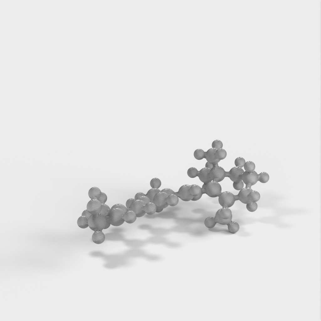 Dit is een moleculair model van Retinol (Vitamine A) geproduceerd in STL-formaat. Het model is zo ontworpen dat het waterbestendig, veelzijdig en gemakkelijk te bewerken is in 3D. Het kan worden gebruikt als leermiddel om kinderen te leren over de chemie achter vitamines en waarom we bepaalde voedingsmiddelen zoals groenten moeten consumeren. Het model geeft de juiste chemische bindingshoeken weer dankzij atoombandoptimalisatie en computersimulaties.