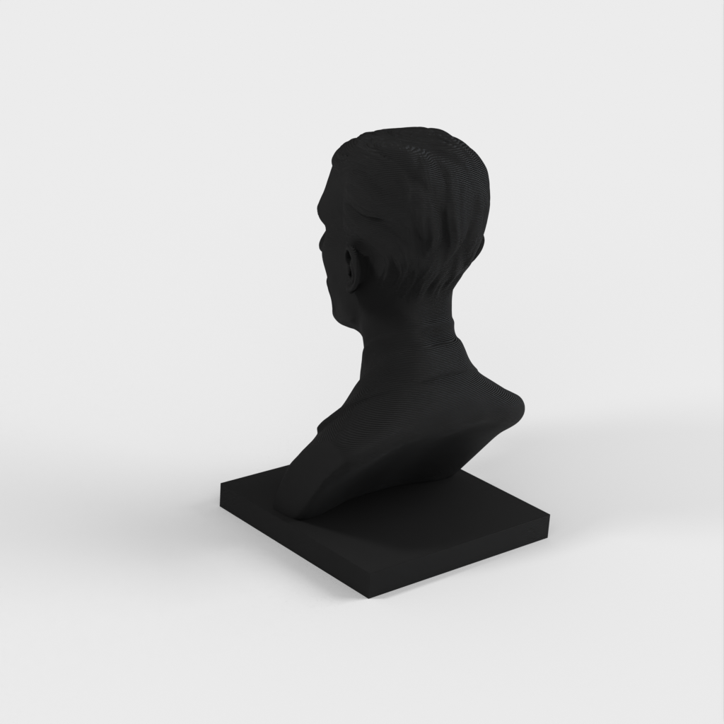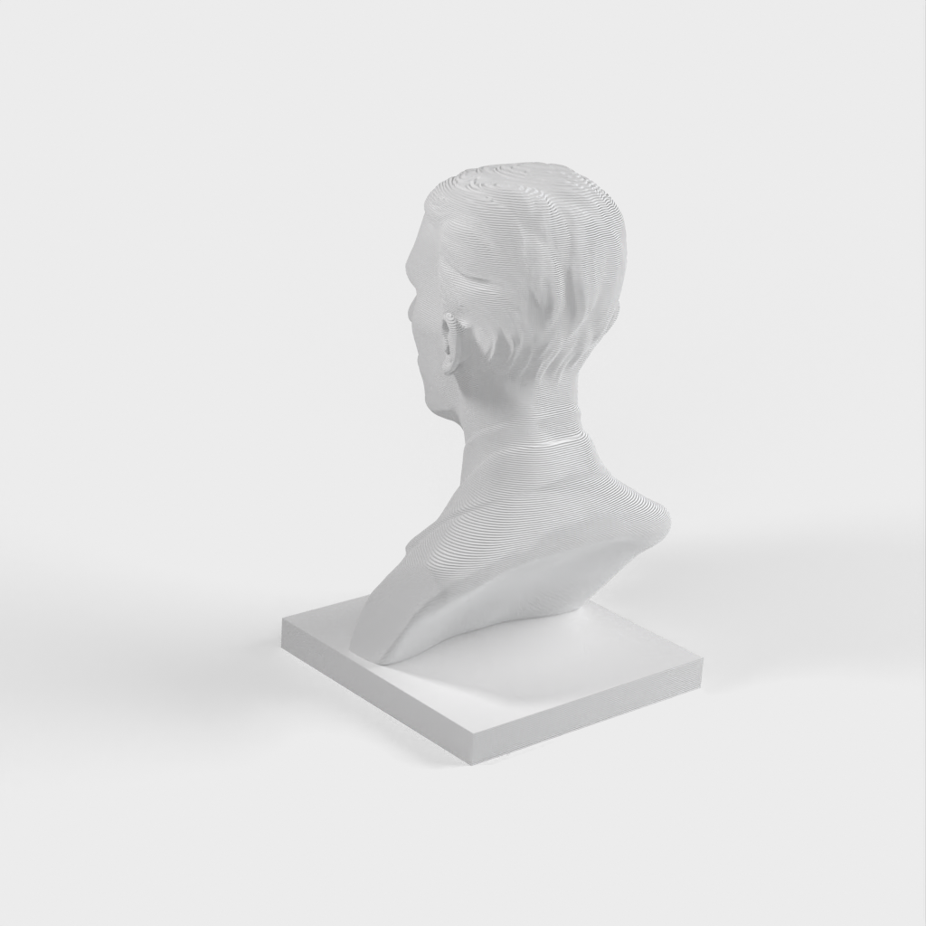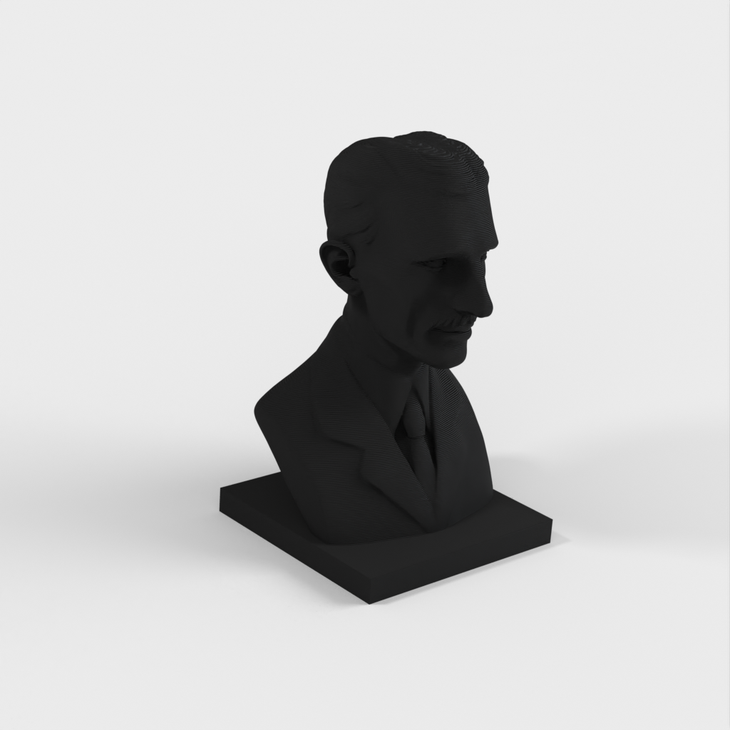 Een eenvoudig borstbeeld van Nikola Tesla met een basale sokkel. Dit borstbeeld is ontworpen om de iconische wetenschapper en zijn opmerkelijke bijdragen aan de wetenschap te eren. Perfect om tentoon te stellen en te waarderen in uw huis, kantoor of op uw bureau.