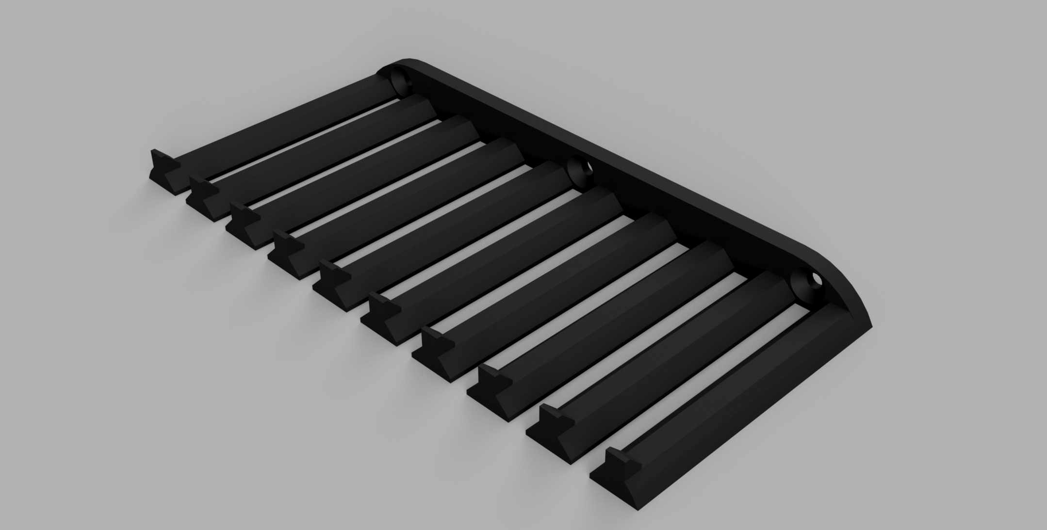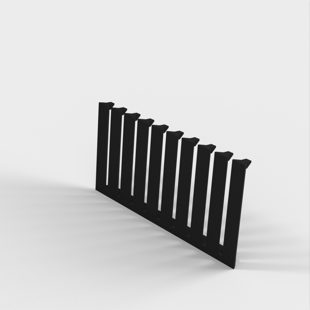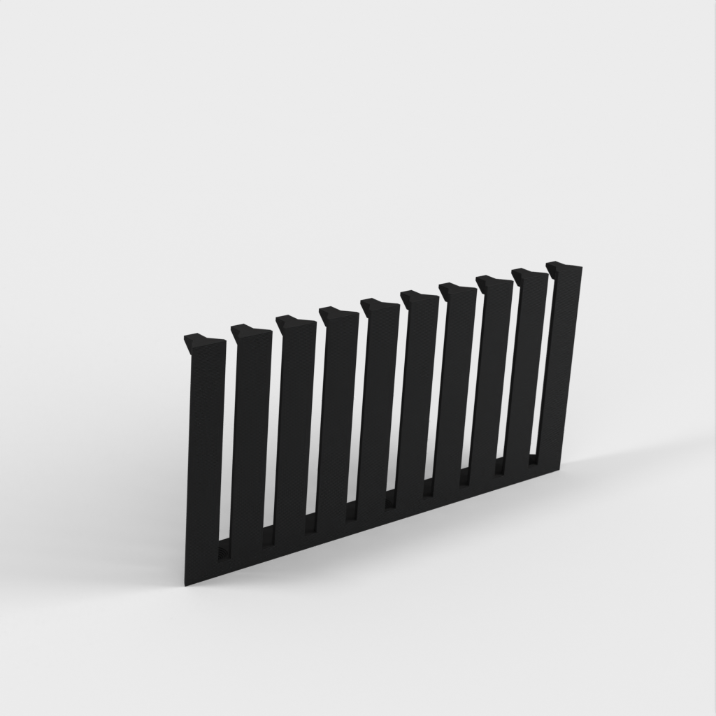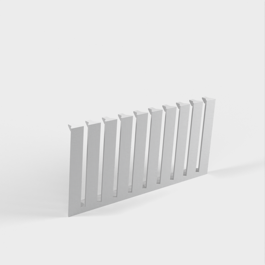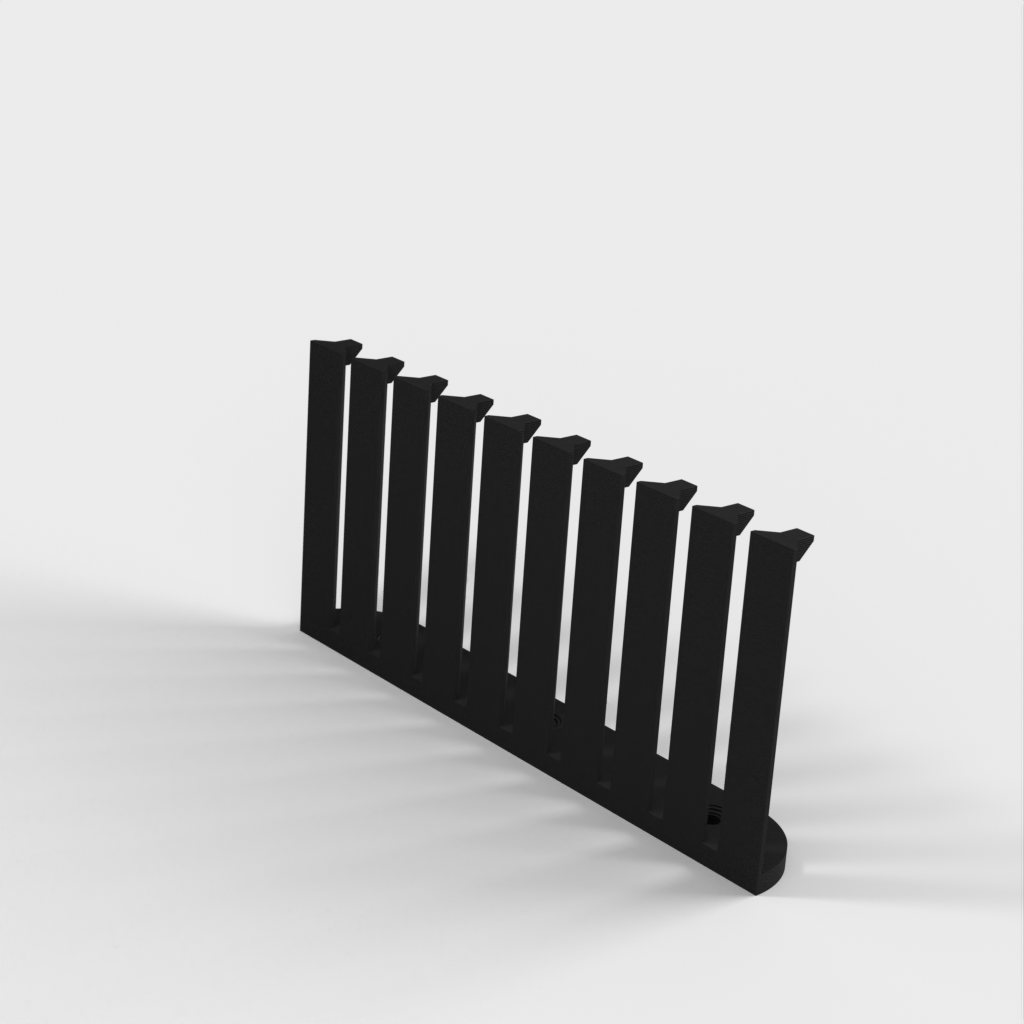 Dit is een parametrische kabelorganiser, ontworpen om je kabels efficiënt te organiseren. Met 10 armen biedt het ruimte voor 9 kabels met 4 mm afstand tussen elke kabel. Het huidige ontwerp is verbeterd met een lagere montagehoogte aan de achterkant vergeleken met versie 1. De schroeven zijn ontworpen om eenvoudig te installeren met verzonken M4 schroeven. Het is perfect voor elk laboratorium of werkplek waar kabels georganiseerd moeten worden.
