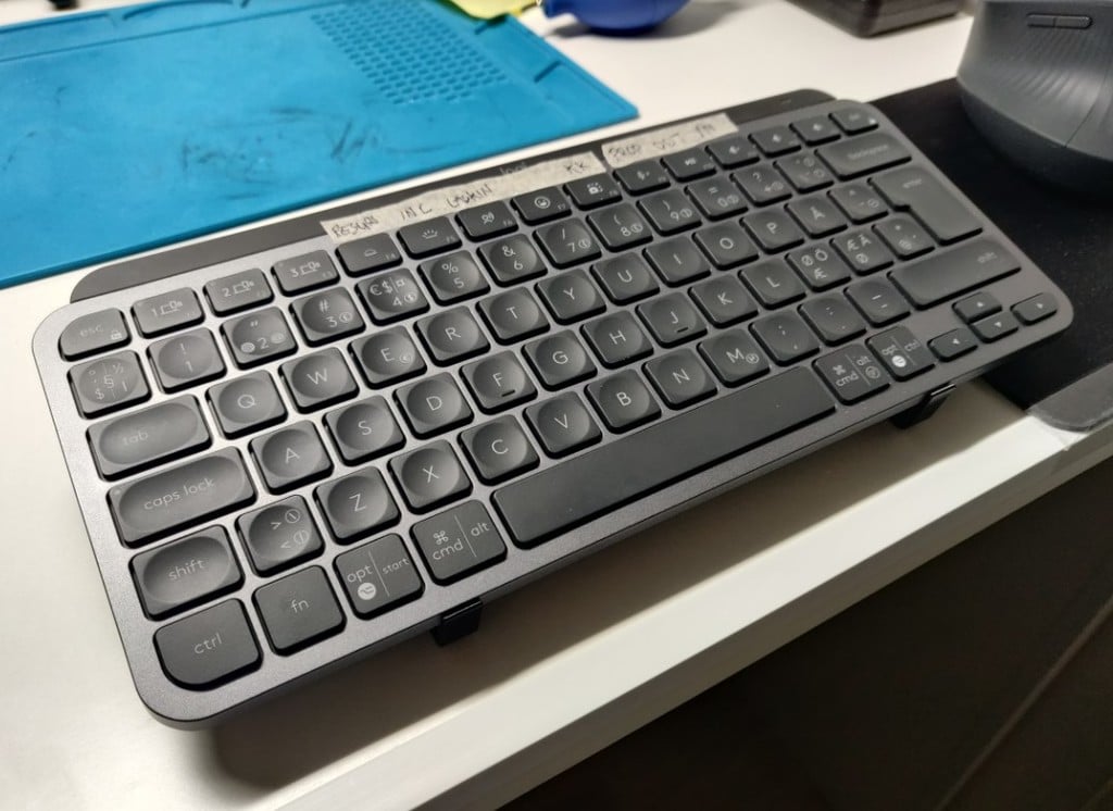 Standaard voor het Logitech MX Keys Mini-toetsenbord. Deze eenvoudige en eenvoudig te monteren standaard kan met dubbelzijdig plakband aan uw bureau worden bevestigd en helpt uw werkruimte te organiseren en uw toetsenbord stabiel en veilig te houden. Maak uw toetsenbord toegankelijker en maak meer ruimte vrij voor andere belangrijke dingen.