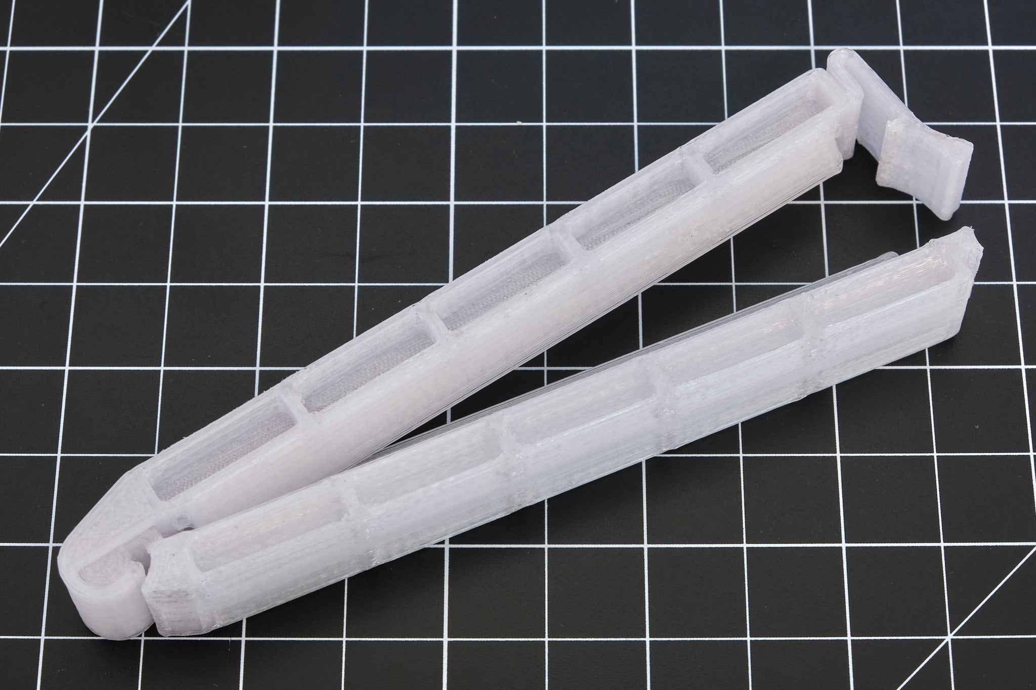 De Hoge Sterkte Zakclip is een 3D-printbare zakclip die een bijna luchtdichte afsluiting maakt met de meeste plastic zakken - van standaard 2mil polyetheen zakken tot dikke meerlaagse koffiezakken. Deze clip klemt de zak agressiever dan andere ontwerpen en maakt geen gebruik van buigscharnieren of print-in-place onderdelen. Er worden STL-bestanden meegeleverd voor clips van 100 mm en 160 mm; grotere maten zijn mogelijk. Originele Solidworks CAD-bestanden worden meegeleverd voor maatwerk.