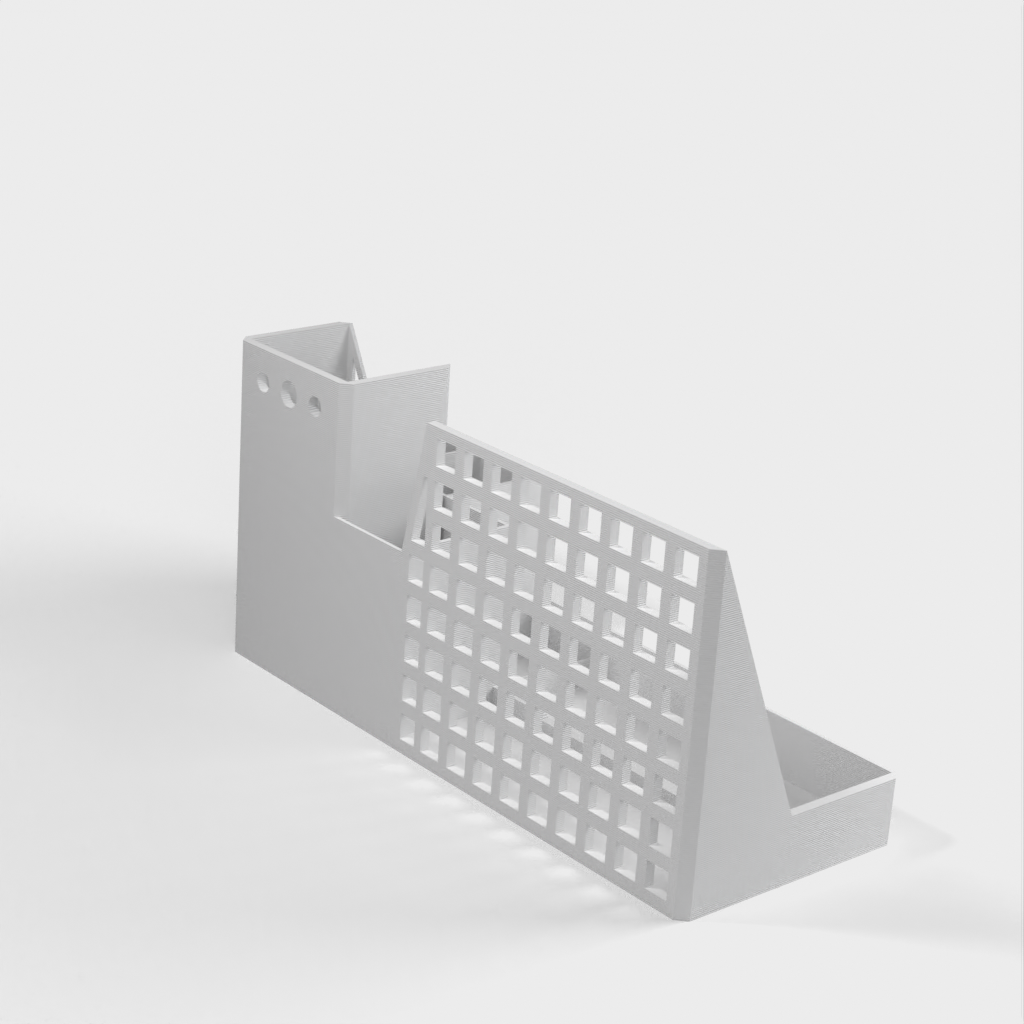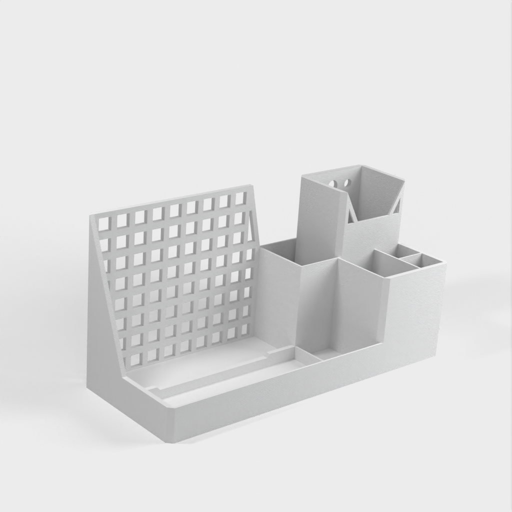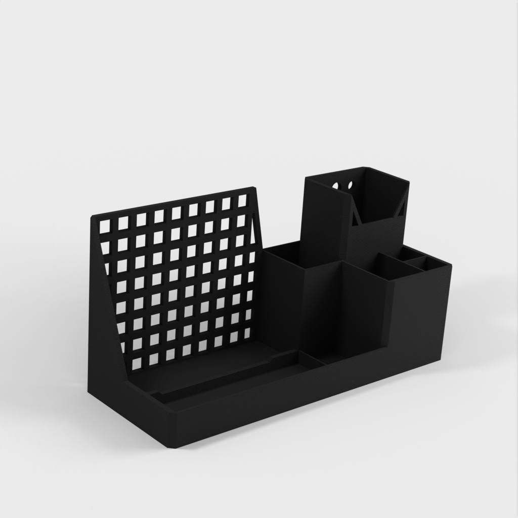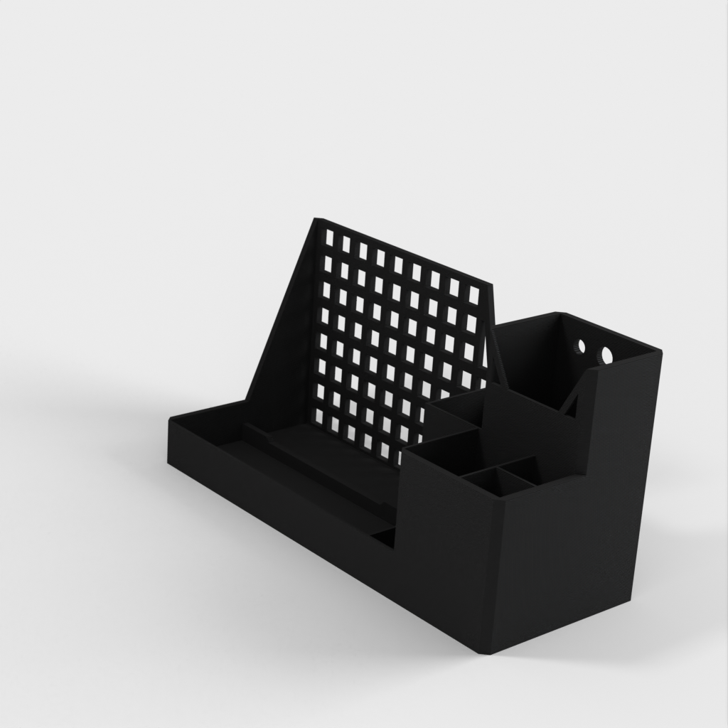 - Kombineret tabletstander og skrivebordsorganisator i ét praktisk design.