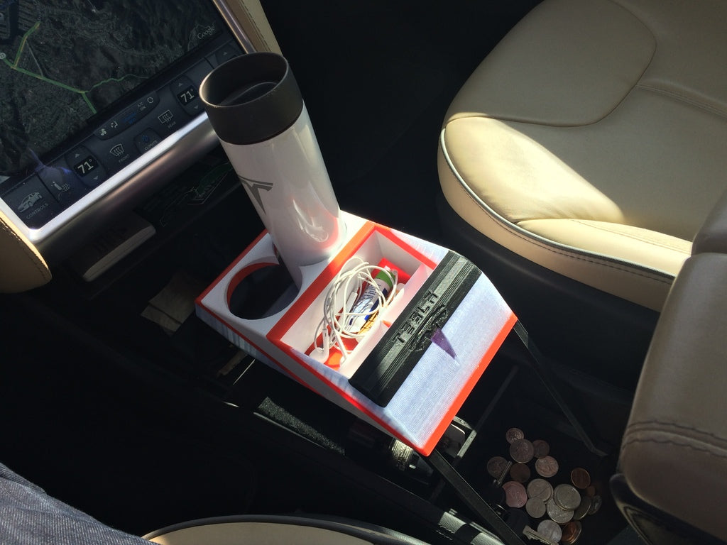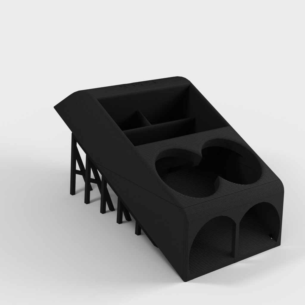 Upgrade uw Tesla Model S met deze prachtige middenconsole. Dit model is ontworpen om zelf te printen, wat betekent dat u volledige controle heeft over het resultaat en het kunt aanpassen aan uw voorkeuren. Deze middenconsole kan u gemoedsrust geven tijdens het rijden door uw drankje veilig op te bergen en uw telefoon bij de hand te houden. De bekerhouders zijn compatibel met de meeste standaard waterflesformaten, evenals diverse frisdrankflessen en bierblikjes. De telefoonhouder is speciaal ontworpen om perfect te passen op de iPhone 5 en iPhone 4S.