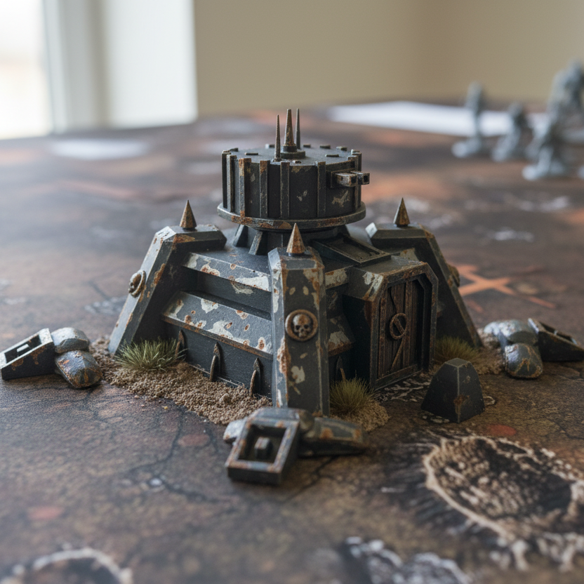 Dit uitkijktoren uit de Apocalypse Fortress-collectie voegt een strategisch element toe aan uw bordspel. In dystopische of grimdark-omgevingen biedt het uw eenheden een formidabel uitzicht en belangrijke dekking. Het gedetailleerde terrein creëert een visueel middelpunt op uw speelmat en verrijkt de spelnarratief.