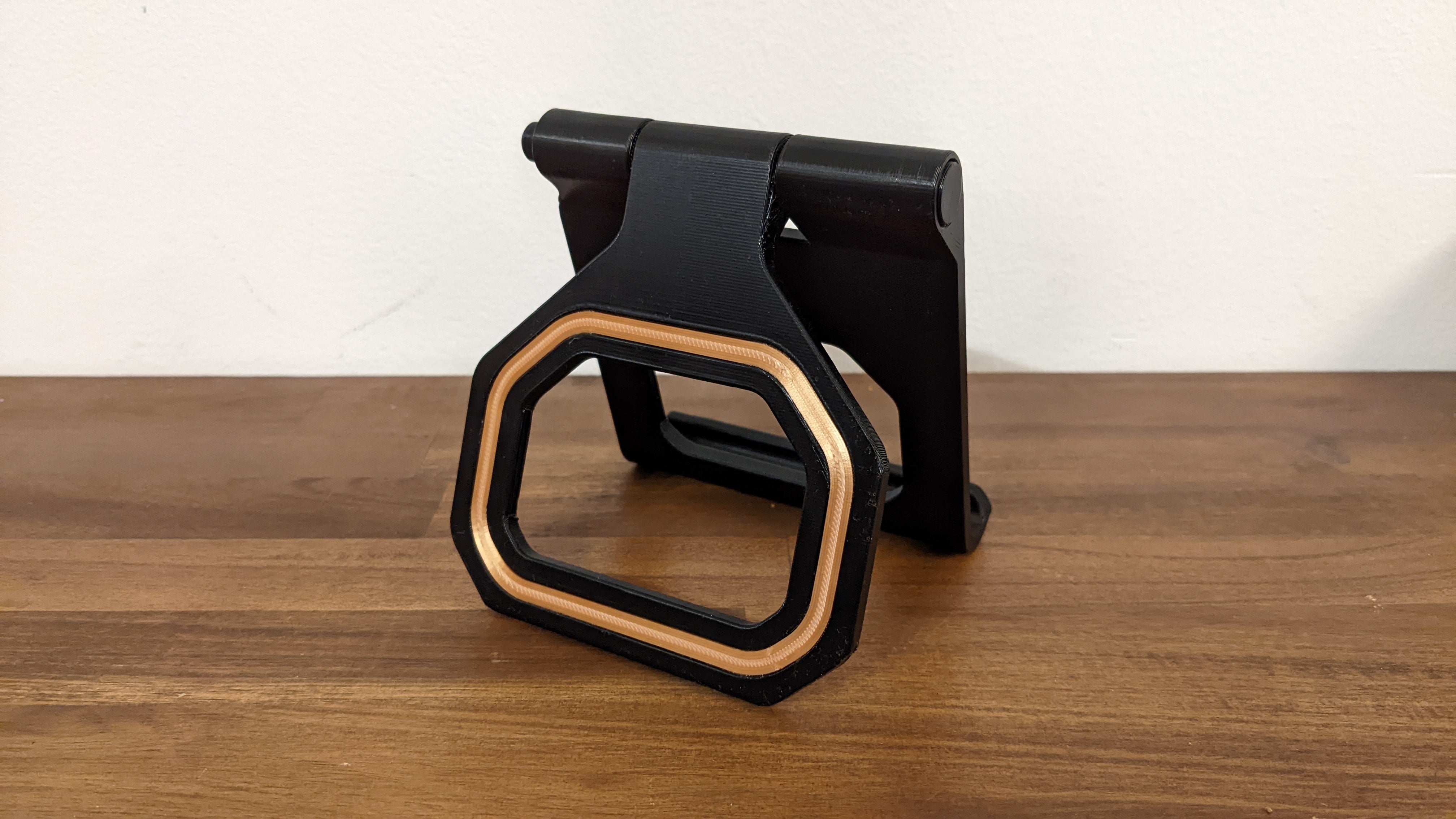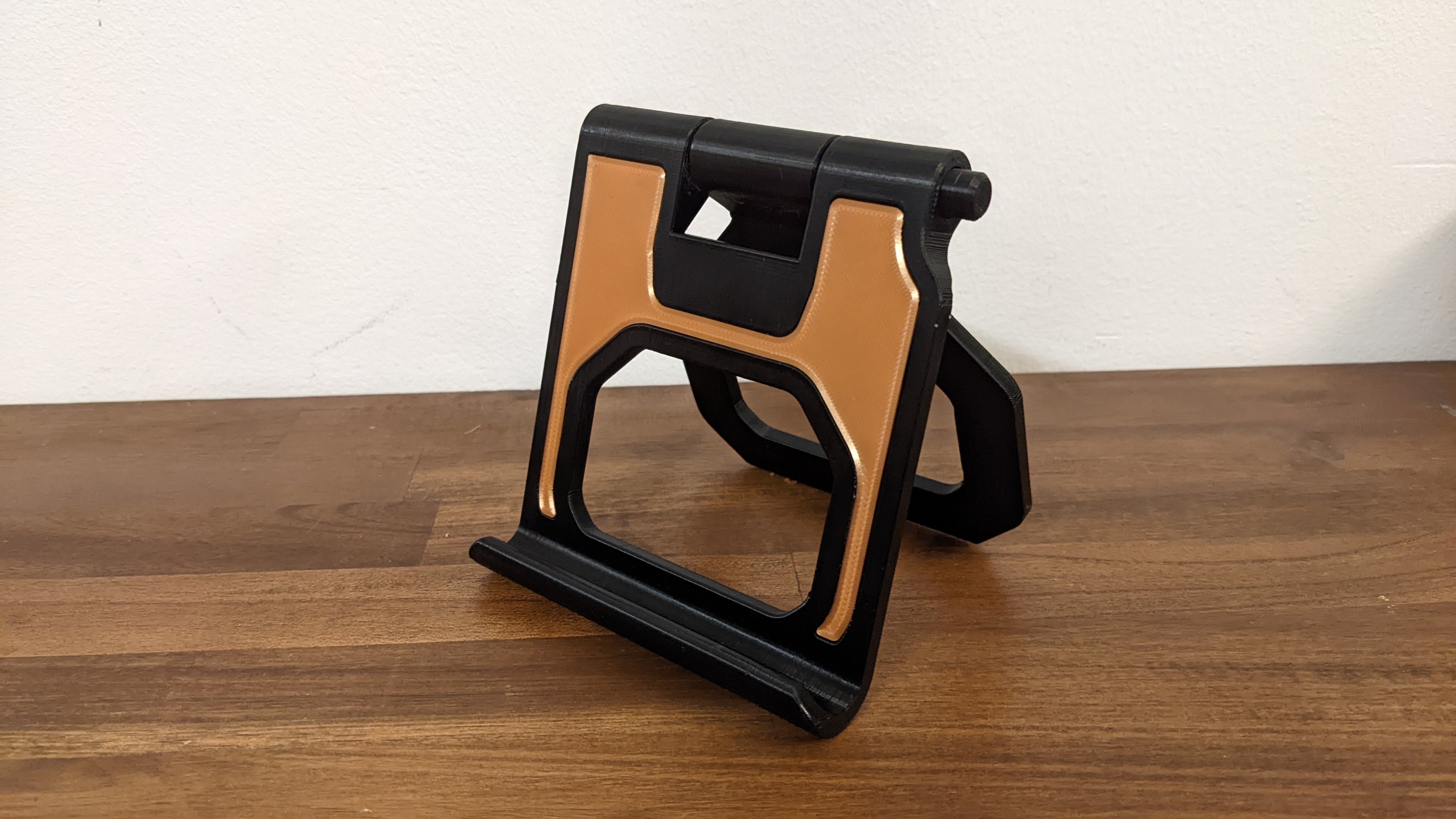Verstelbare tablet/telefoonstandaard met drukknopverstelling. Deze afdrukbare standaard is perfect voor het vasthouden van je iPad, iPhone of een andere tablet of mobiele telefoon. De standaard heeft een ingebouwde kantelfunctie met drukknop waarmee je gemakkelijk de hoek van je apparaat kunt aanpassen voor een comfortabele kijkervaring. Of je nu video's kijkt, leest of bladert op je apparaat, dit product maakt het gemakkelijk en handig om dat te doen.