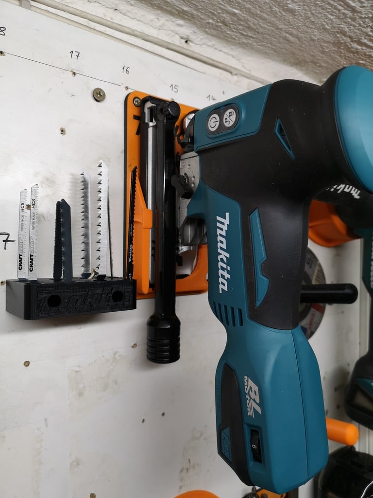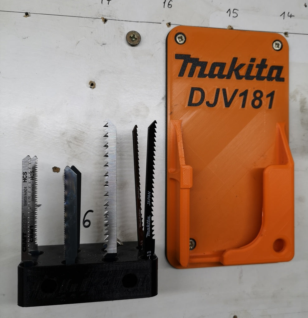 Aan de muur gemonteerde Makita DJV181 decoupeerzaag