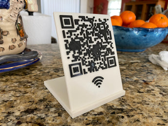 Dit is een eenvoudig en elegant WiFi-bordje met standaard dat je kunt gebruiken om je WiFi-hotspot SSID en wachtwoord met je gasten te delen. De meeste iOS- en Android-apparaten kunnen de QR-code interpreteren en maken verbinding met het WiFi-netwerk zonder handmatig een hotspot te selecteren of een wachtwoord in te voeren.
