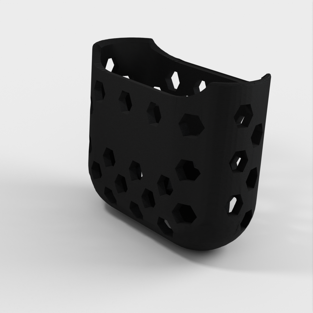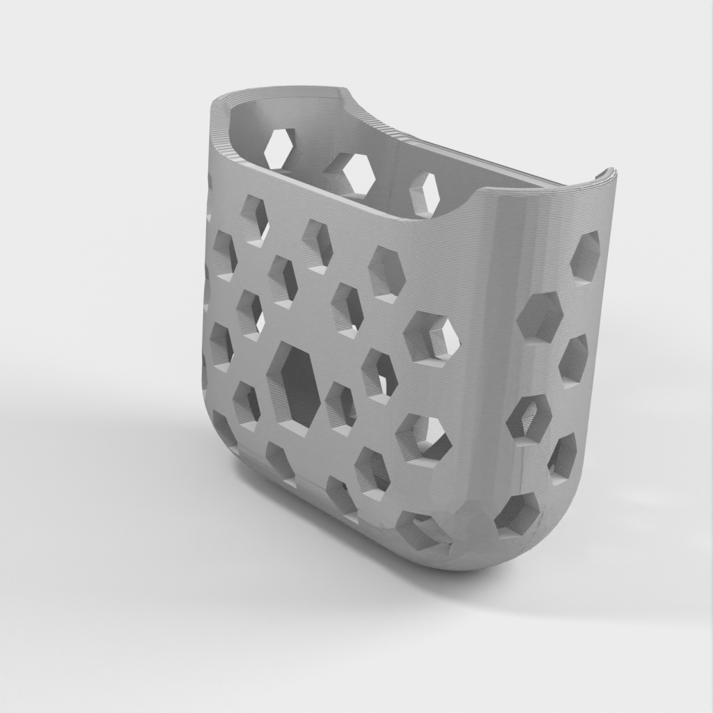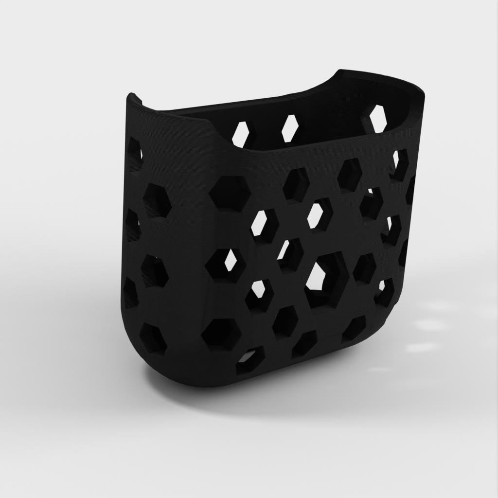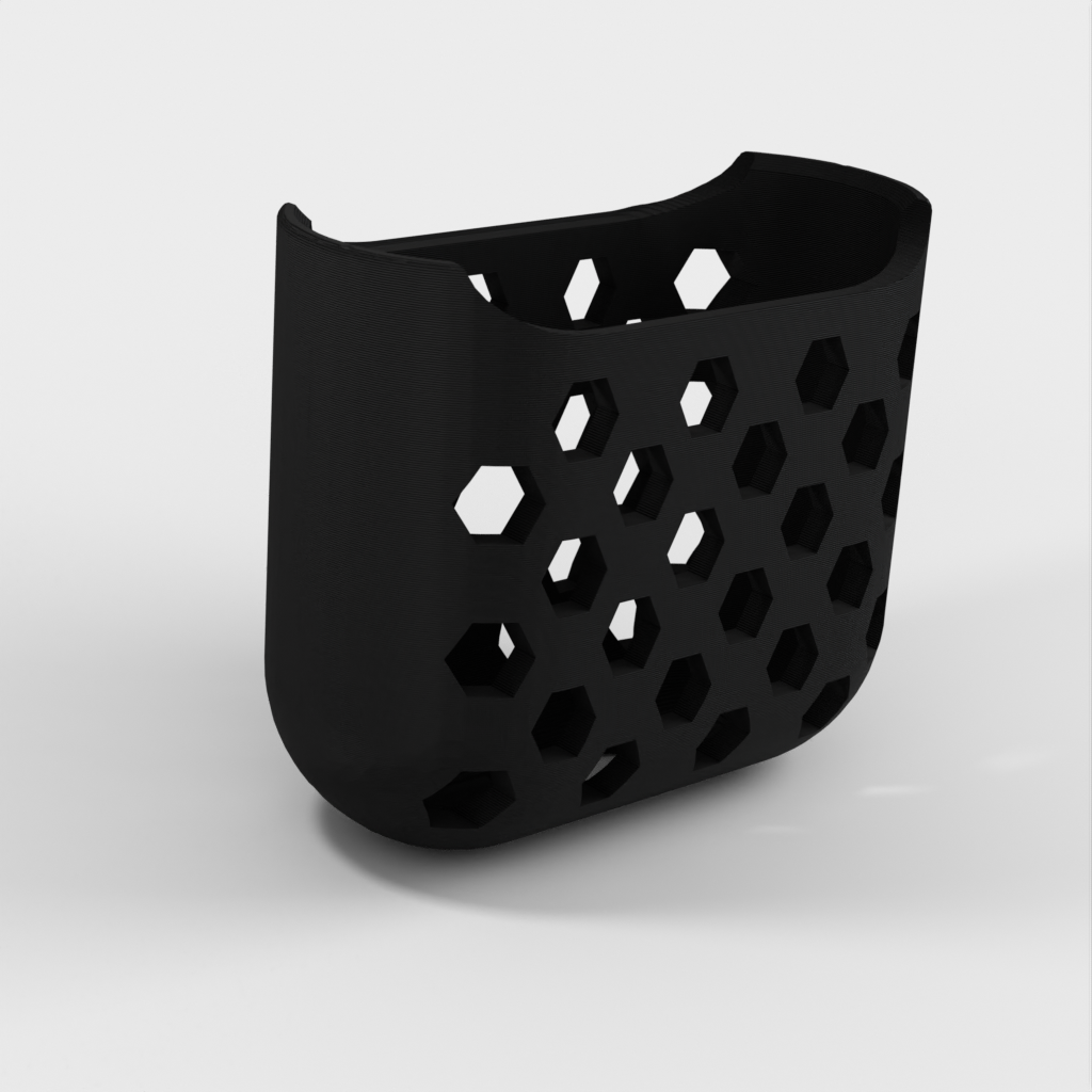 Bewerking. Achter zeshoekig gat waarin de terugknop van de Airpods past. De eerste versie drukt op de knop en reset deze.