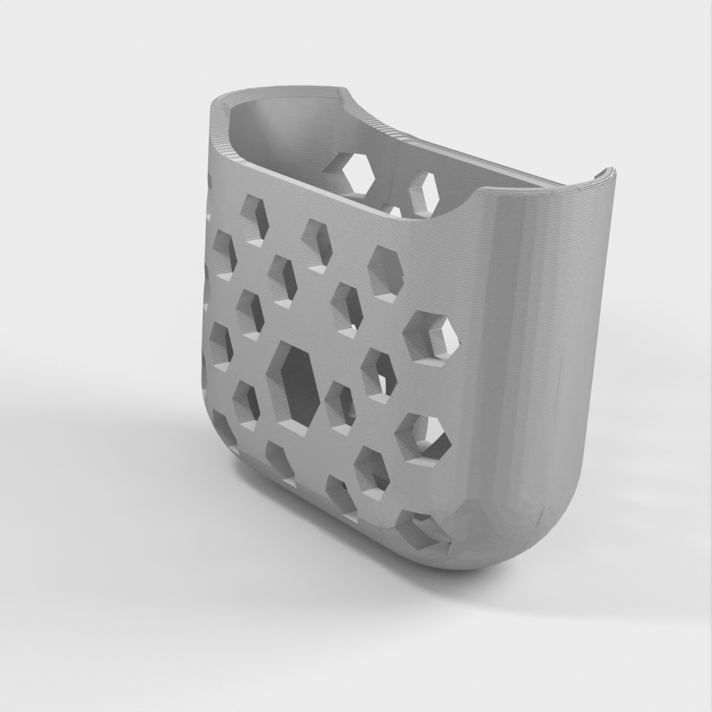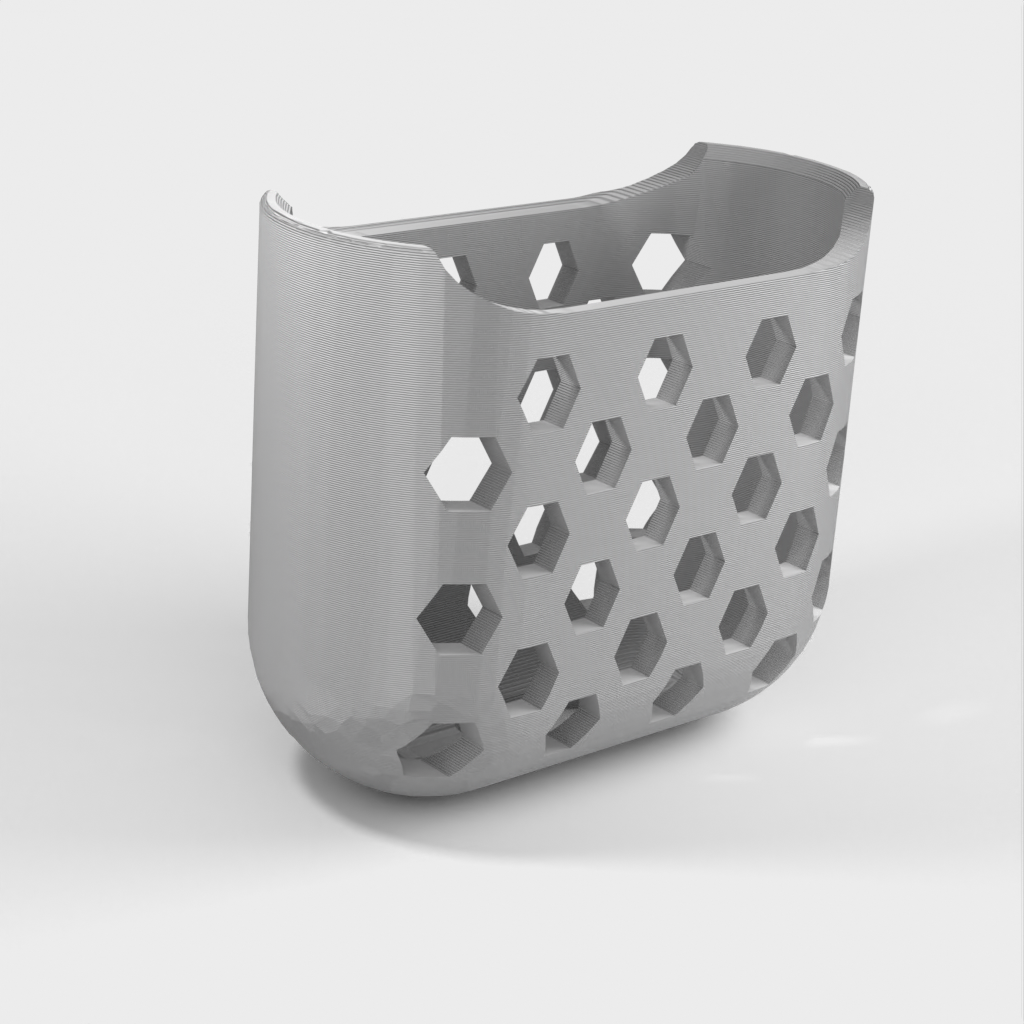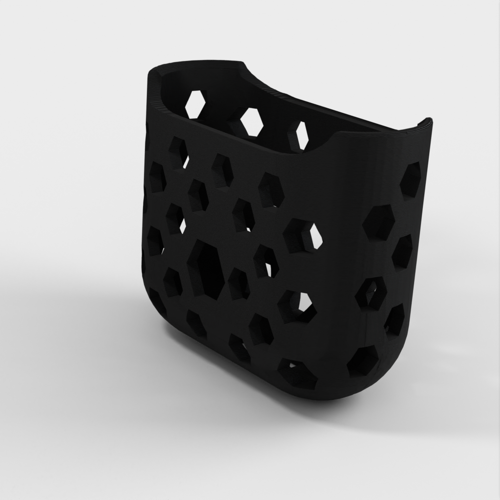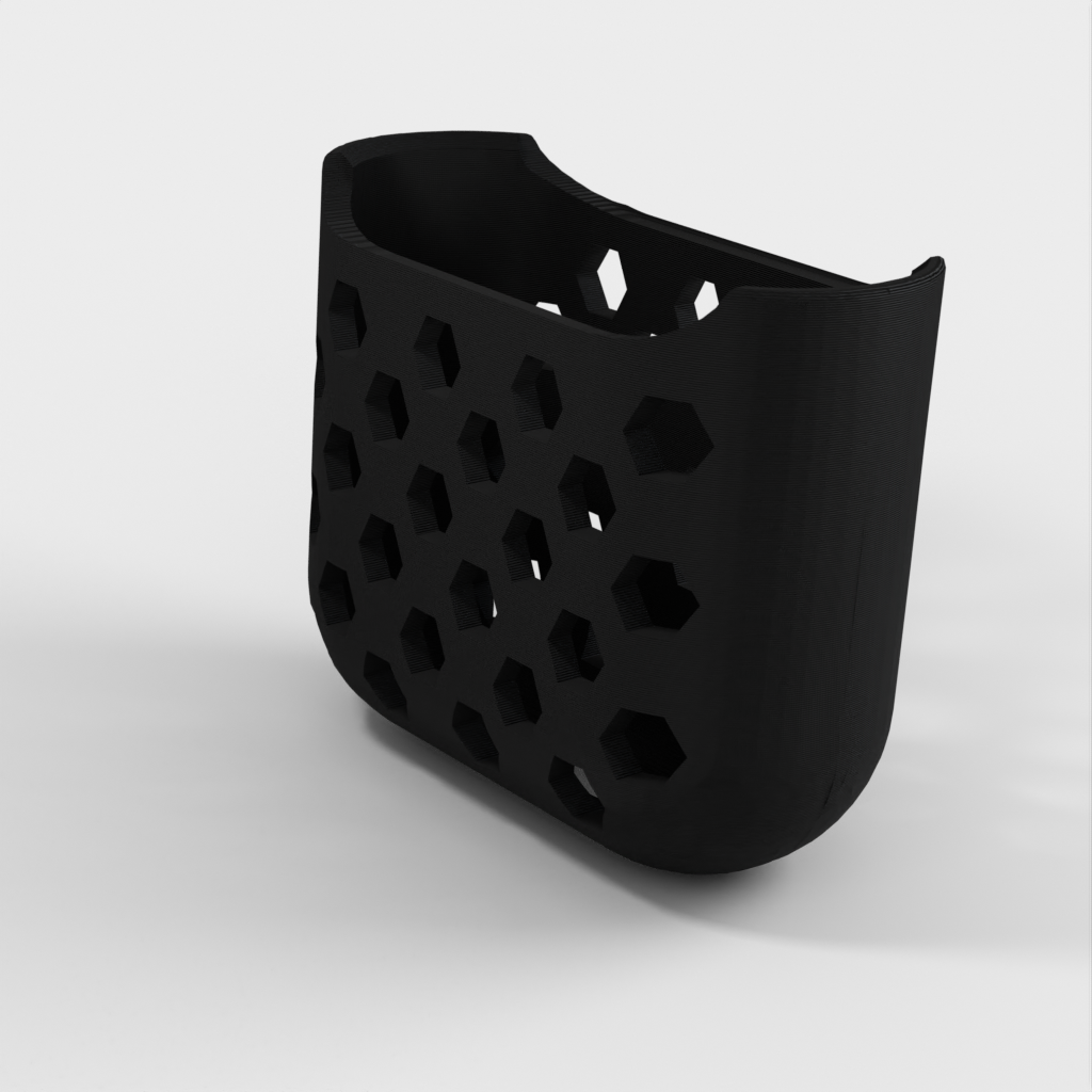 Bewerking. Achter zeshoekig gat waarin de terugknop van de Airpods past. De eerste versie drukt op de knop en reset deze.