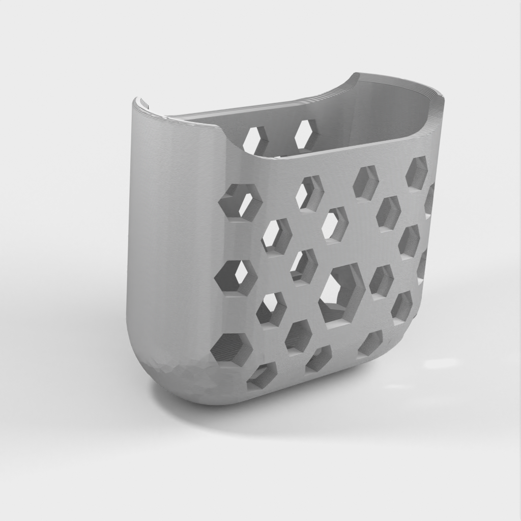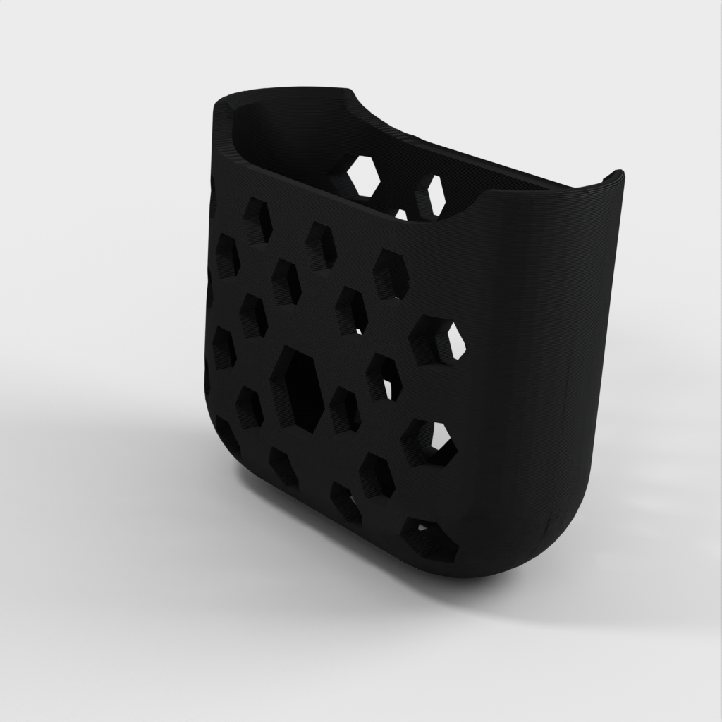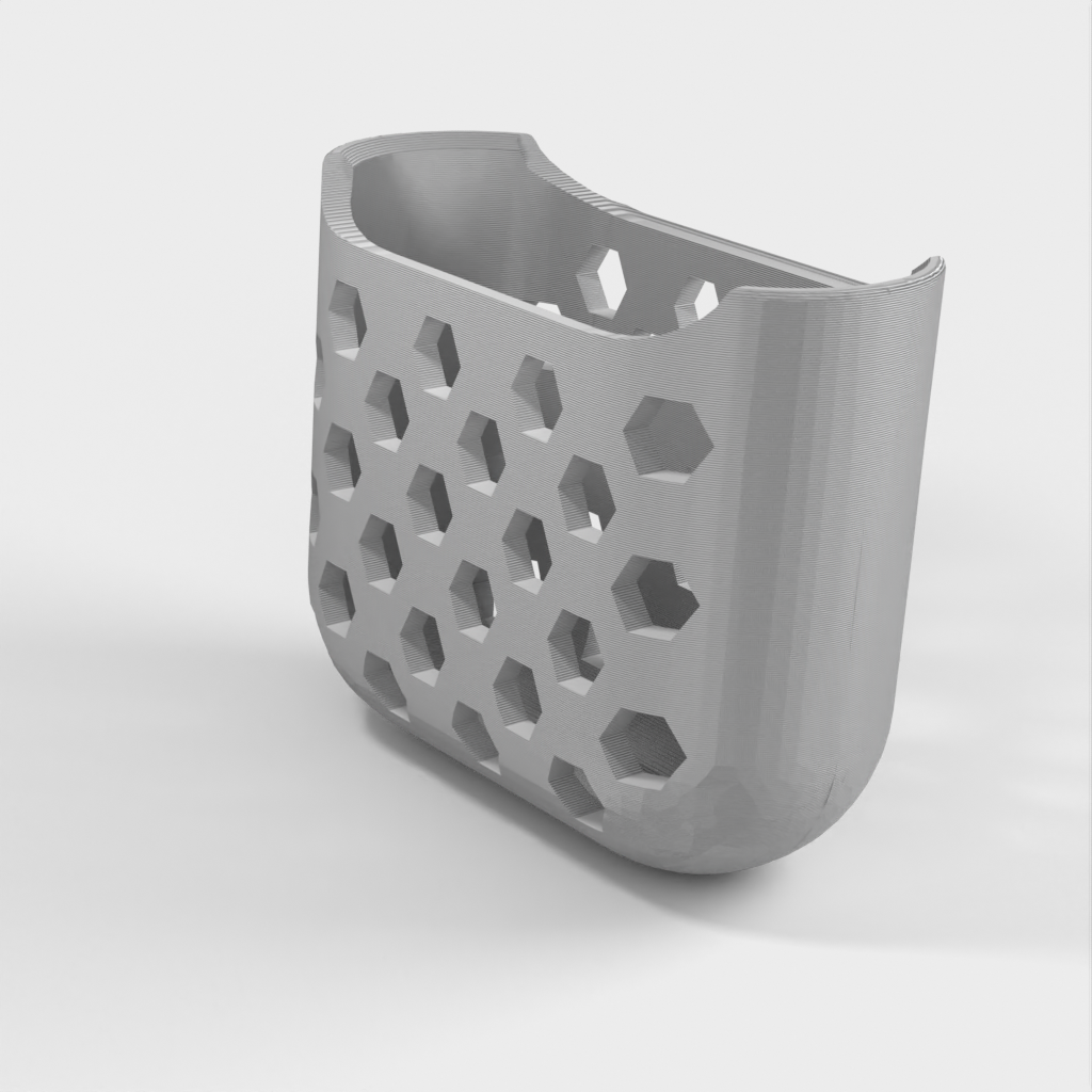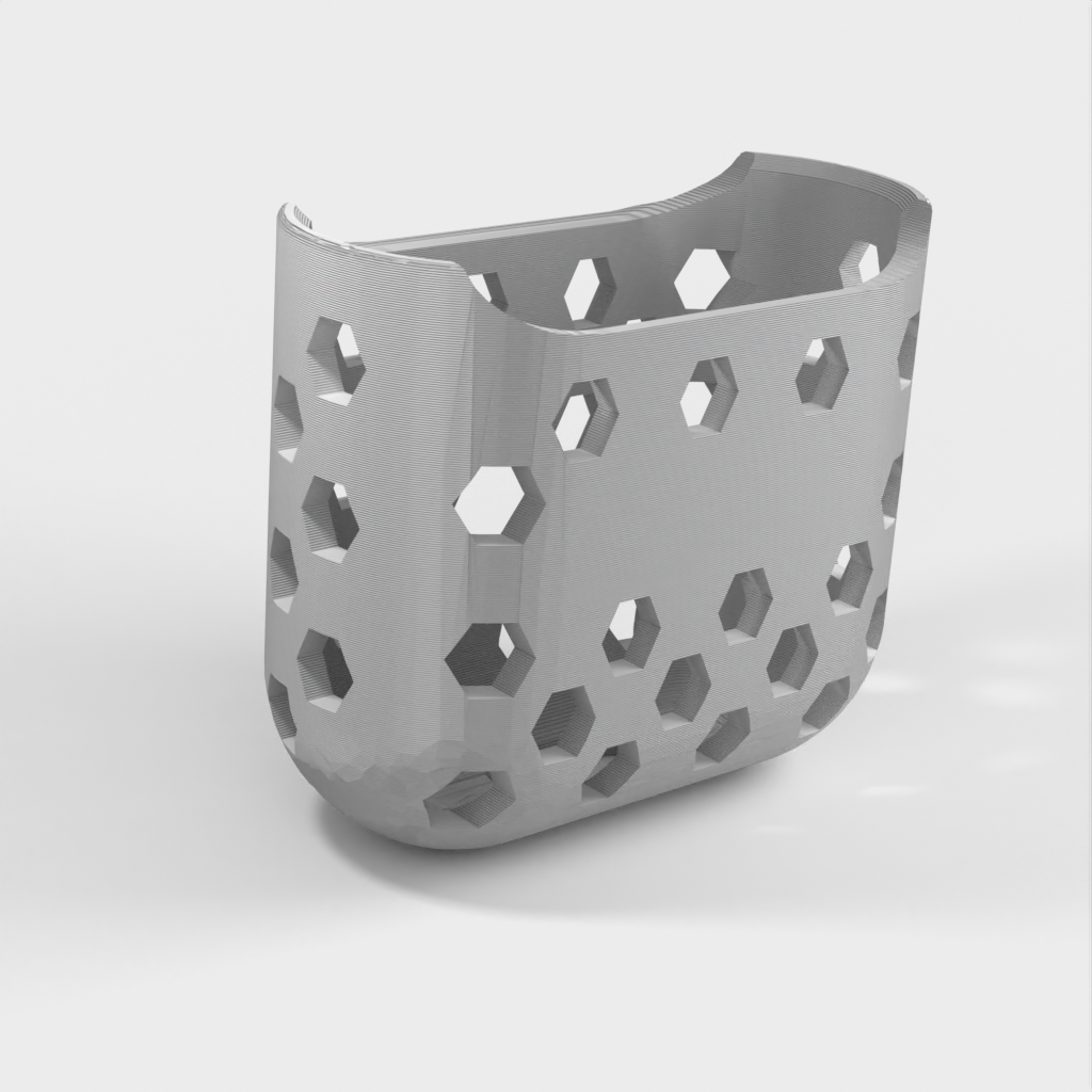 Bewerking. Achter zeshoekig gat waarin de terugknop van de Airpods past. De eerste versie drukt op de knop en reset deze.