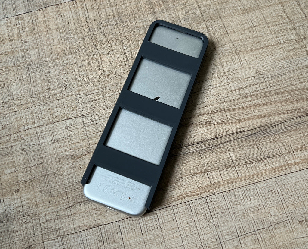 Dit is een hoesje voor de Apple TV-afstandsbediening (1e generatie Siri-afstandsbediening). Het hoesje zorgt ervoor dat de afstandsbediening beschermd is en gemakkelijk te vinden. Als je wilt, kun je het ontwerp van de hoes aanpassen met het meegeleverde Blender-project.