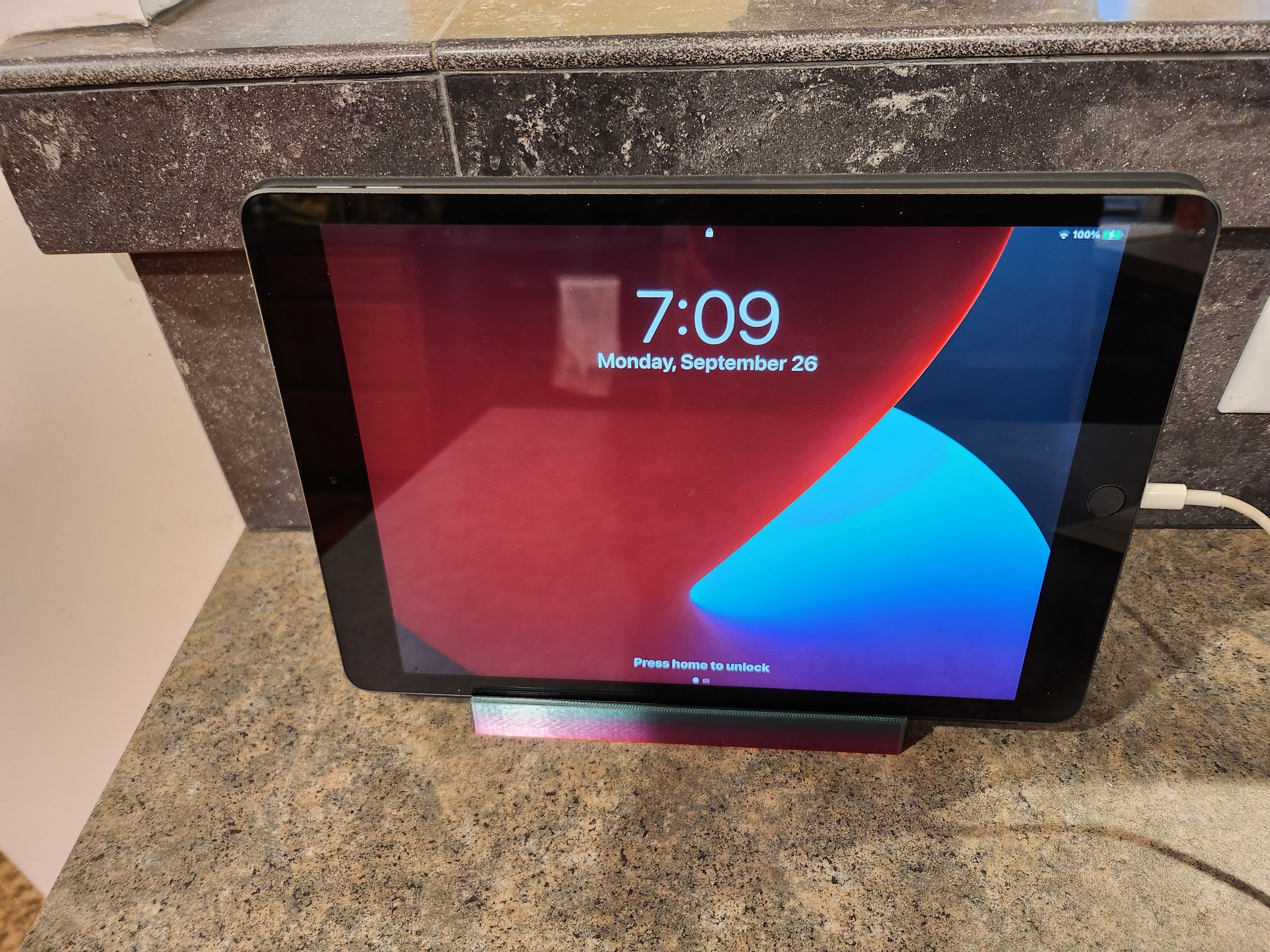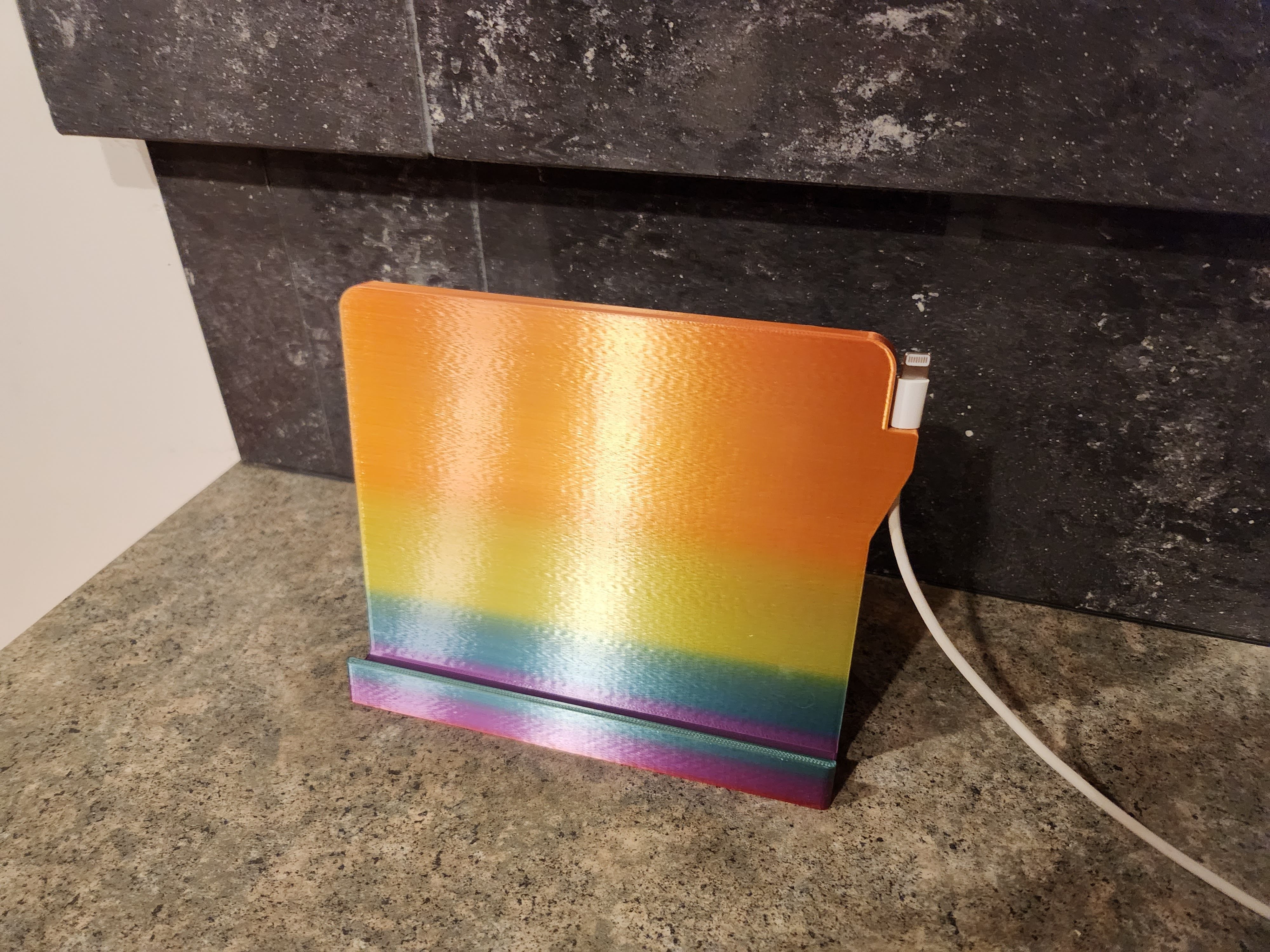 Dit is een compacte iPad-standaard met een ingebouwde haak voor de lightning-kabel. Als je de iPad niet gebruikt, kun je hem gemakkelijk opbergen op deze mooie en minimalistische standaard. De standaard kan ook functioneren als een houder voor de iPad tijdens het gebruik, perfect voor het bekijken van video's, het weergeven van recepten, het lezen van online boeken enzovoort. Hij heeft een stabiele basis en past goed, zelfs als de iPad bedekt is.