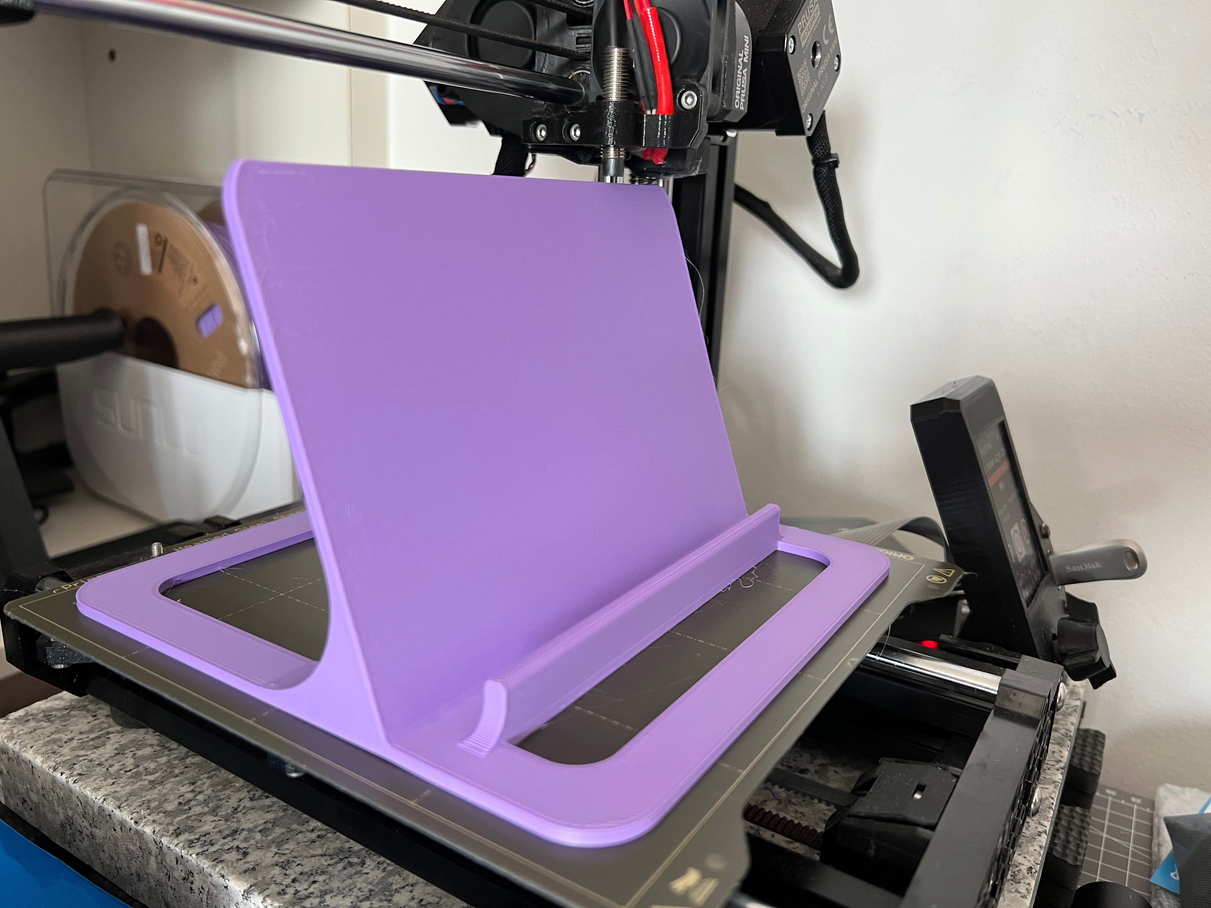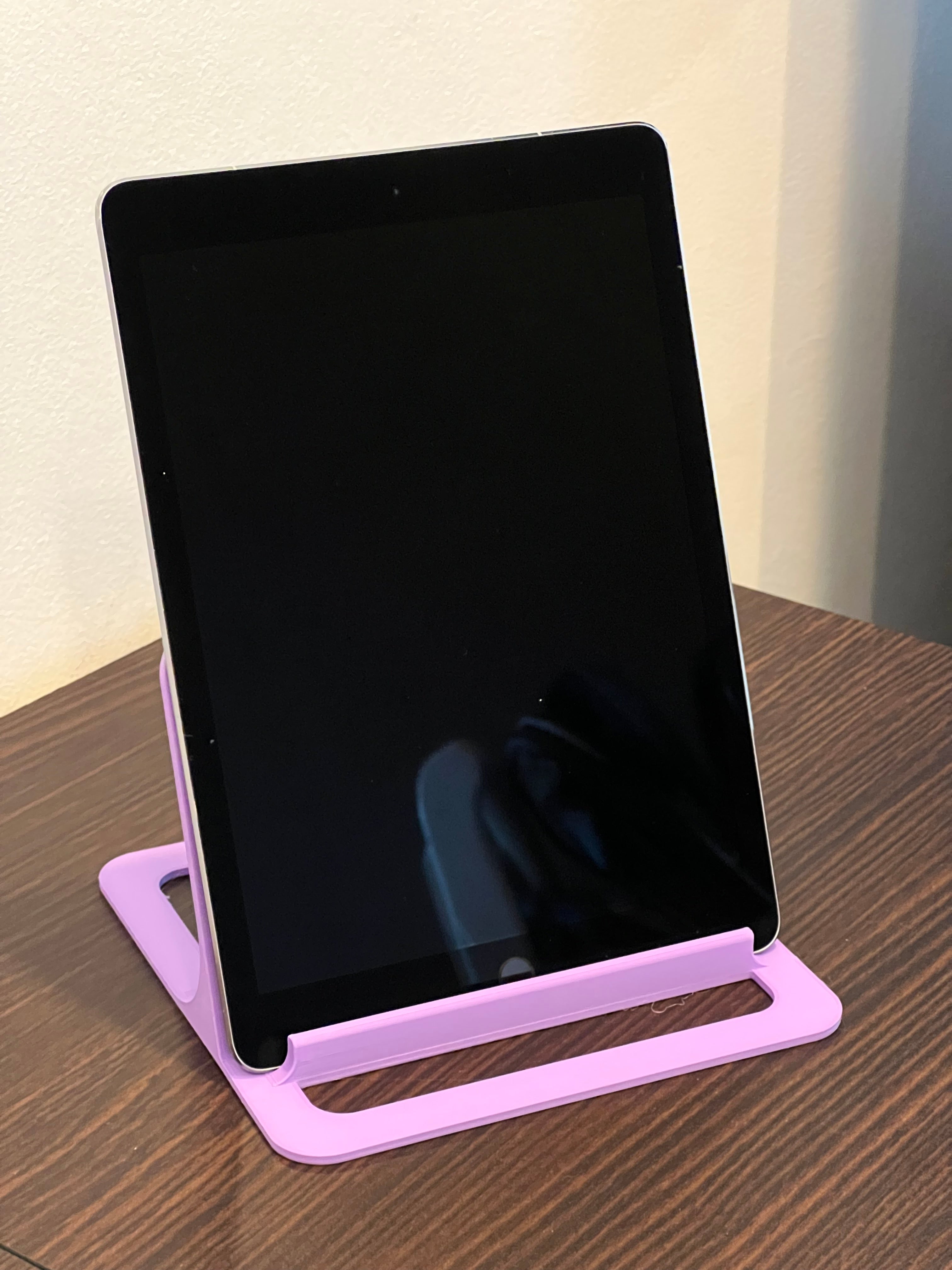 Dit is een eenvoudige iPad-standaard die iets groter is dan normaal voor stabiliteit op zachtere oppervlakken zoals beddengoed. Geschikt voor de meeste iPads met en zonder hoes. Geprint in Polymer PolyTerra Purple. Fusion360- en STEP-bestanden zijn inbegrepen.