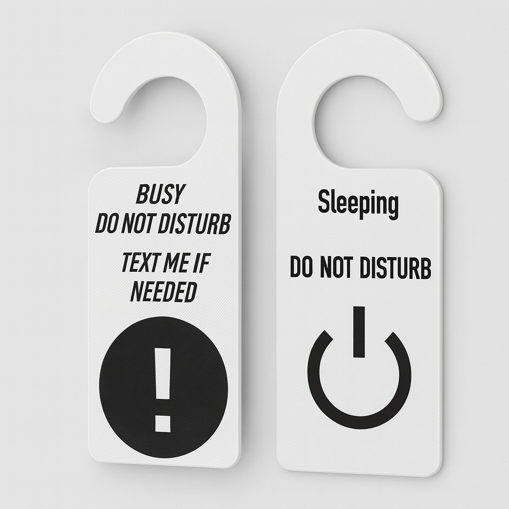 Dit bord is een beleefde manier om mensen te laten weten dat je je concentreert, aan het werk bent of gewoon even met rust gelaten wilt worden. Het bord weet zowel je wens om met rust gelaten te worden op een stevige als beleefde manier uit te drukken, zodat je de vrede en harmonie bewaart.