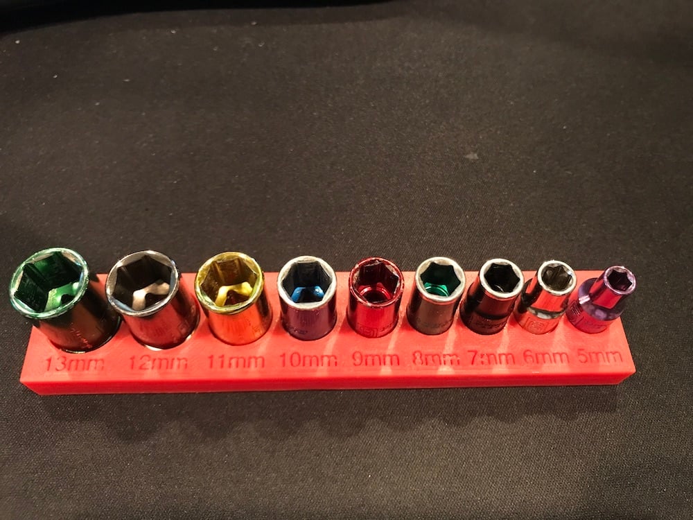 Deze praktische organizer is ontworpen om uw 1/4" aandrijfmetrische doppen georganiseerd en gemakkelijk toegankelijk te houden. Het kan doppen in de maten 5 mm tot 13 mm veilig opbergen, waardoor het ideaal is voor veel voorkomende doppensets. Met ingebouwde sleuven voor 6 mm x 1,5 mm N52 neodymium magneten zijn uw doppen effectief beveiligd, zodat ze op hun plaats blijven, zelfs bij rechtopstaande opslag of als ze ondersteboven worden gehouden. De organizer is compatibel met populaire merken zoals Craftsman en Harbor Freight. Het draagt bij aan een overzichtelijkere werkplek, waar u snel de juiste dop kunt vinden wanneer u deze nodig heeft, en vermindert het risico op het verliezen van uw doppen.
