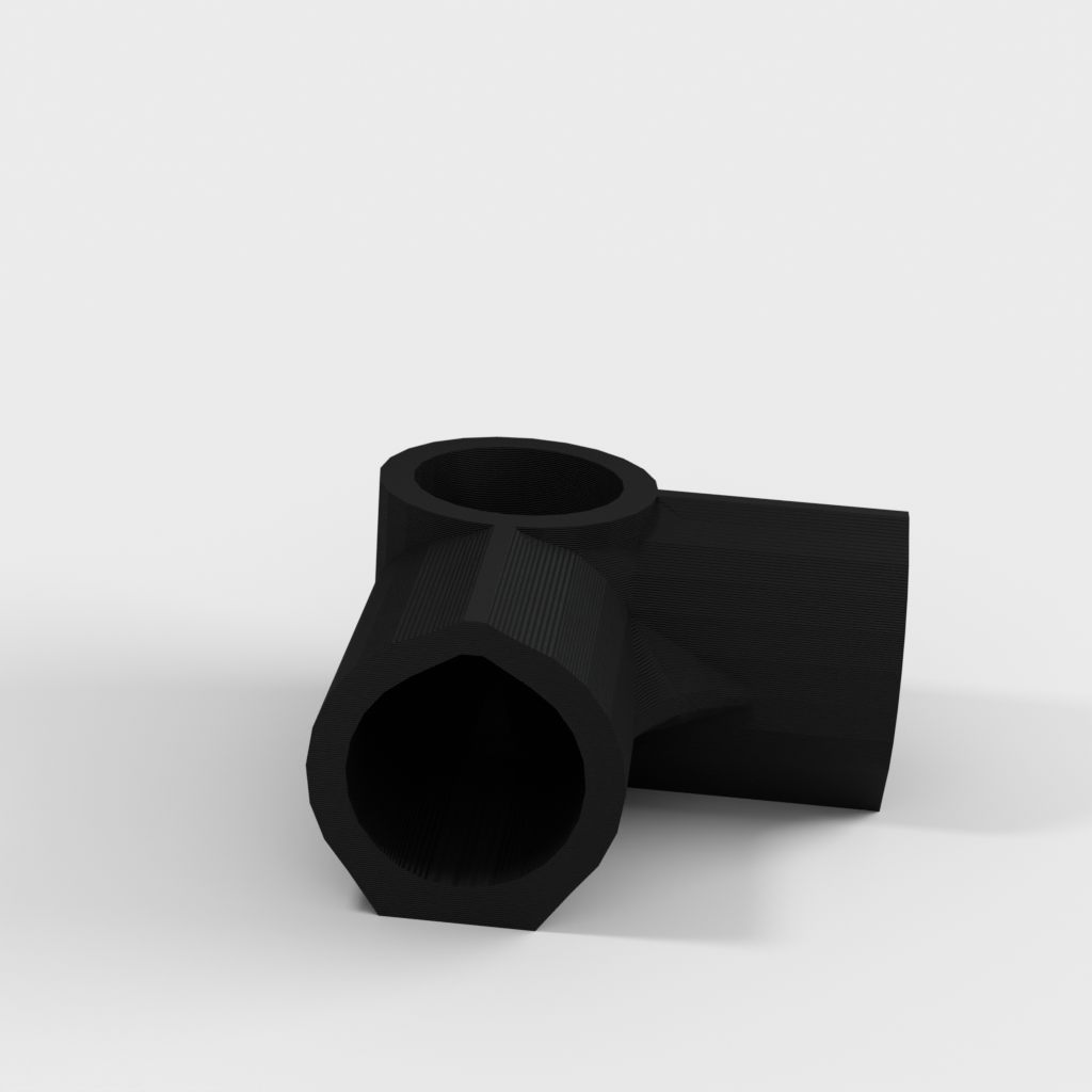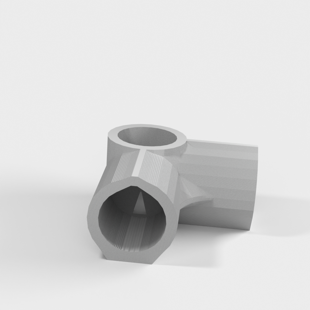 Met dit hoekstuk kunnen gebruikers eenvoudig frames bouwen voor diverse doeleinden, waaronder kleine kassen, opslagunits, displaystandaards of aangepaste rekken. Het ontwerp van het hoekstuk omvat kleine driehoekige openingen die een optimale droging van de lijm bevorderen en een solide en duurzame verbinding van PVC-buizen garanderen, wat bijdraagt aan een betrouwbare en robuuste structuur voor uw bouwproject.