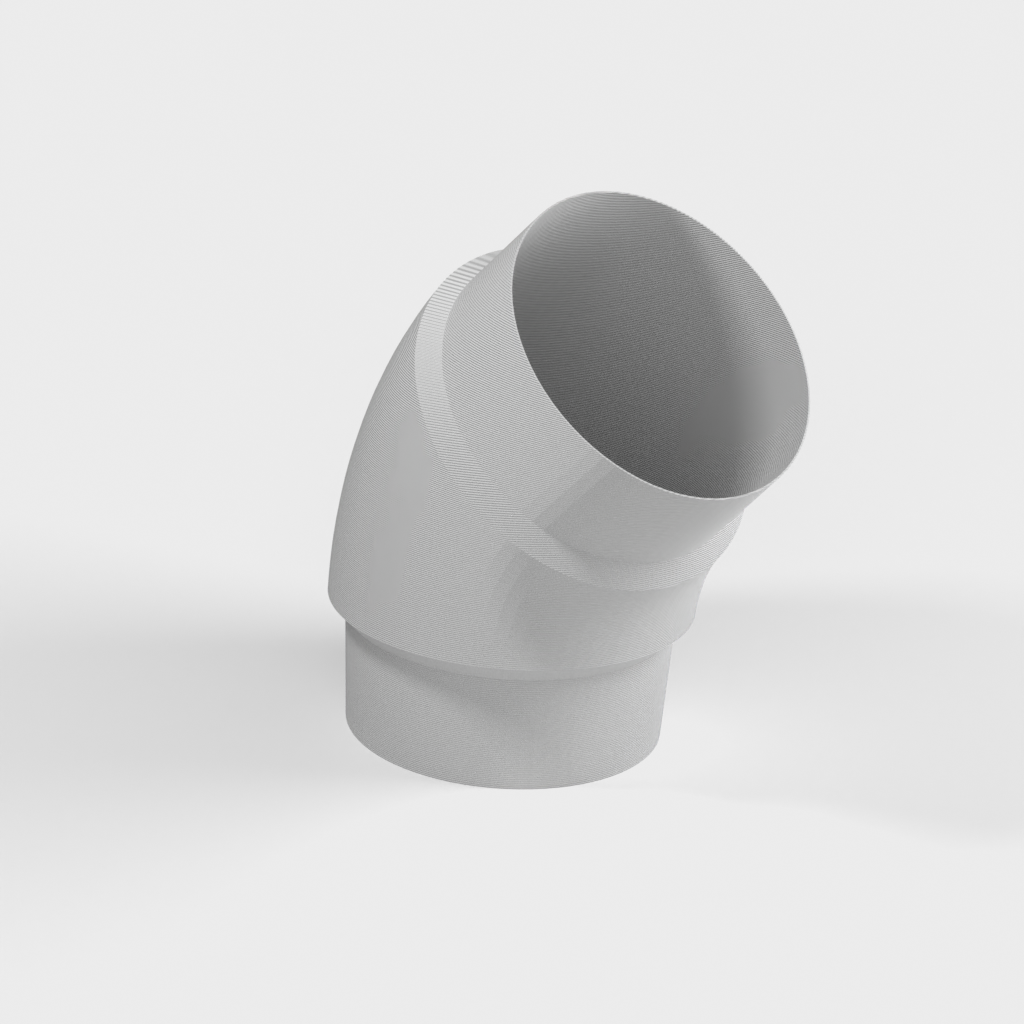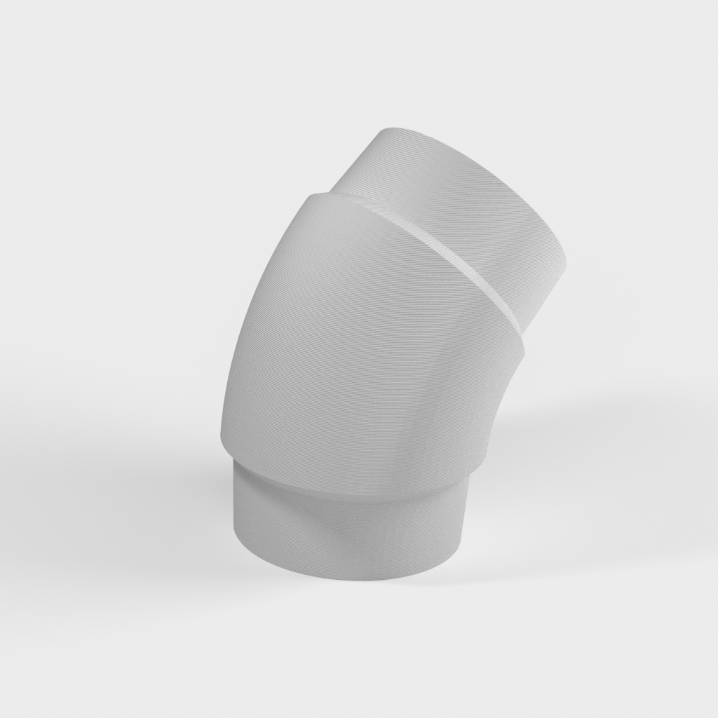 Met zijn praktische 45 graden bocht maakt hij een flexibele installatie en aanpassing van uw stofafzuiging setup mogelijk. Het ontwerp zorgt voor een frictiepassing, waardoor er geen lijm nodig is bij de montage. Dit maakt de installatie snel en eenvoudig, en het maakt ook een eenvoudige demontage en hergebruik van het systeem mogelijk, bijvoorbeeld bij veranderingen in de werkplaatsinrichting. Het is een lichte en kosteneffectieve oplossing die veel flexibiliteit biedt in uw stofbeheerproject.
