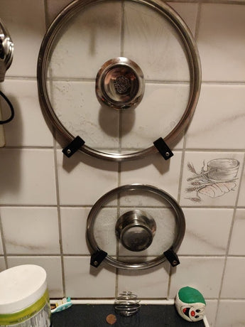 Deze wandhouders zijn ontworpen om een praktische opbergoplossing te bieden voor uw pannenlappen. Door de deksels aan de muur te hangen, kunt u effectief waardevolle kastruimte vrijmaken en uw keuken georganiseerder houden. De houders zorgen ervoor dat uw pannenlappen altijd binnen handbereik zijn, waardoor het kookproces gestroomlijnder wordt. Hun eenvoudige en functionele ontwerp past discreet in de meeste keukens en draagt bij aan een opgeruimde en functionele werkplek.