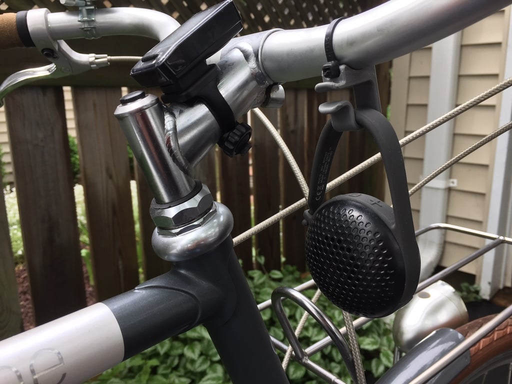 De beugel houdt de luidspreker stevig op zijn plaats en voorkomt dat deze van het stuur glijdt en tegen de stuurpen botst. Tegelijkertijd is het ontwerp zo uitgevoerd dat de luidspreker eenvoudig te monteren en demonteren is wanneer dat nodig is. De installatie is eenvoudig en vereist slechts één kabelbinder om de houder stevig aan het fietsstuur te bevestigen.