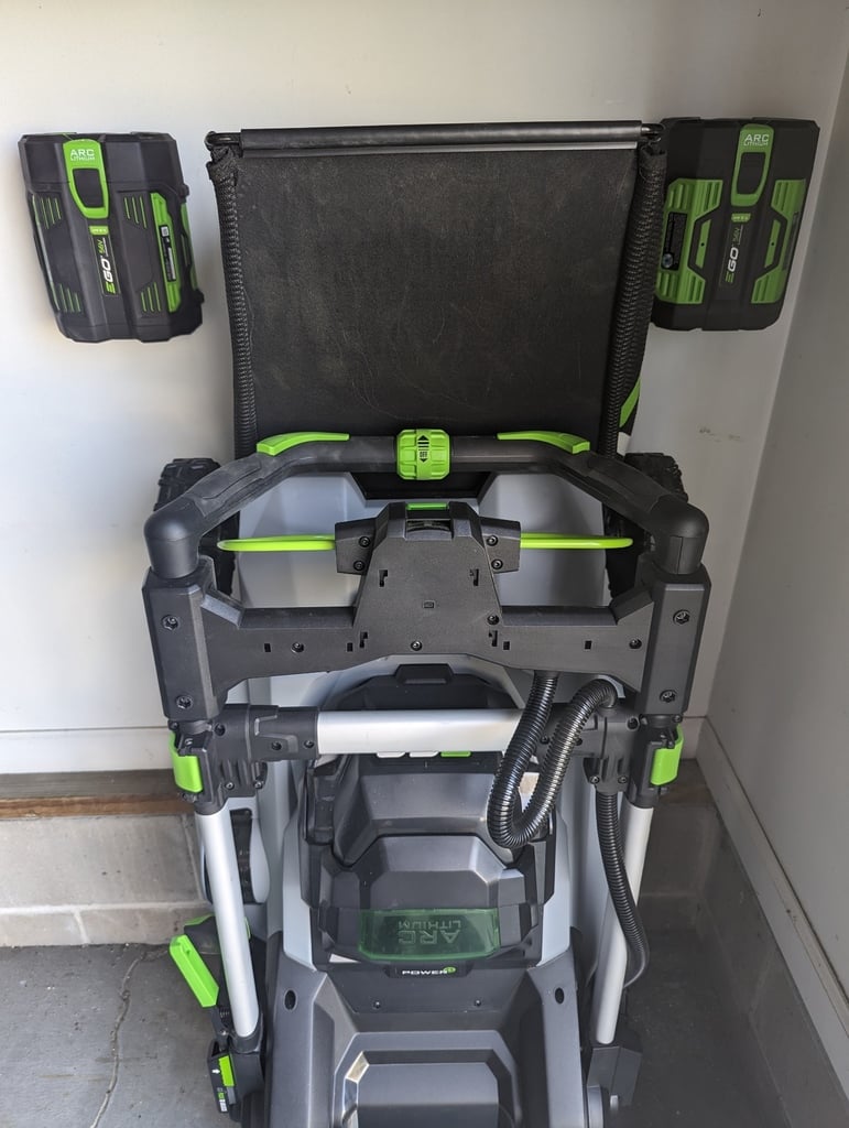 - Efficiënte opslag van de opvangzak van de grasmaaier.