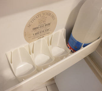 - Houdt flessen en bekers stabiel in de koelkastdeur.