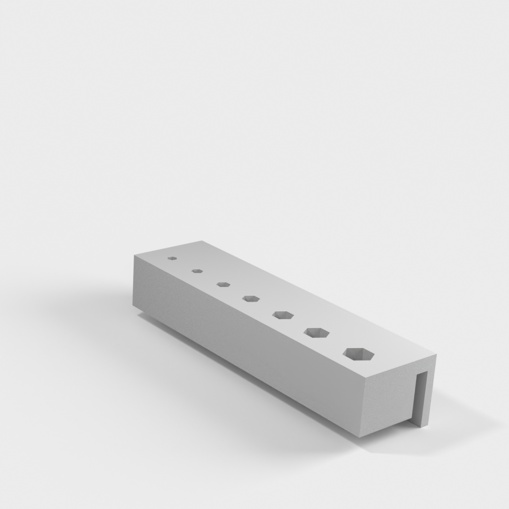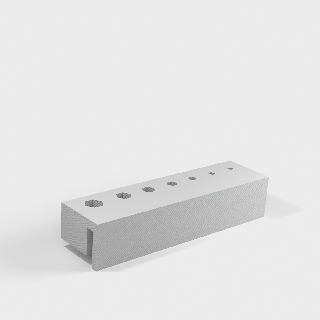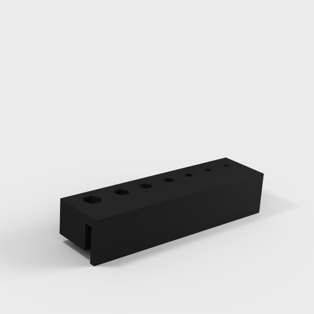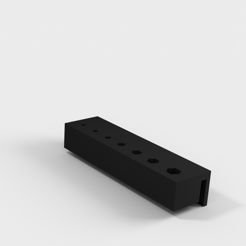 Deze houder is ontworpen om uw T-handgreep inbussleutels efficiënt op te bergen en kan eenvoudig aan de zijkant van uw gereedschapskist worden gemonteerd. Het doel is om uw gereedschap georganiseerd en binnen handbereik te houden, zodat u tijdens uw werk gemakkelijker en sneller de juiste inbussleutel kunt vinden. De houder zorgt ervoor dat uw inbussleutels beschermd zijn tegen slijtage en minimaliseert het risico dat u ze kwijtraakt wanneer ze niet in gebruik zijn. Het biedt een praktische en ruimtebesparende oplossing voor zowel professionals als hobbyisten die orde willen houden in hun gereedschapsarsenaal.