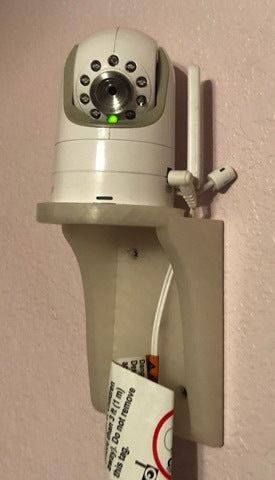 Om een nette installatie te behouden, zijn er uitsparingen in de ring voor de stroomkabel, microfoon en antenne. Hoewel de stroomkabel tijdens de installatie enigszins moet worden gekanteld, zorgt dit voor een nauwsluitende en discrete afwerking. Deze wandmontage biedt een praktische en ruimtebesparende manier om uw camera in huis te integreren.