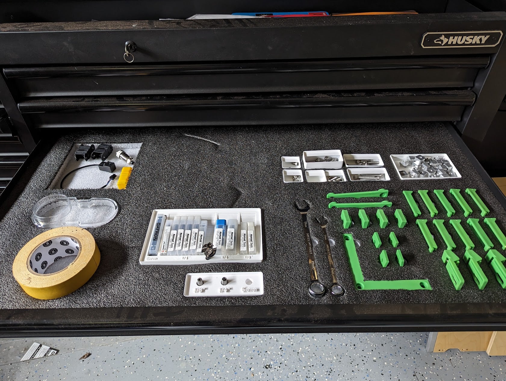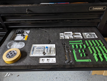 Oorspronkelijk ontwikkeld om in een Husky 60" gereedschapskist te passen en geoptimaliseerd voor gebruik met de Carbide 3D Shapeoko 5 Pro, biedt dit bestand flexibiliteit zodat je de grootte en indeling kunt aanpassen aan je specifieke behoeften en bestaande opslagoplossingen. Het voltooide schuiminzetstuk helpt je gereedschap te beschermen tegen schade, vermindert rommel en maakt het gemakkelijk en snel om de juiste apparatuur te vinden tijdens het werken. Het draagt bij aan een meer georganiseerde en efficiënte werkplek.