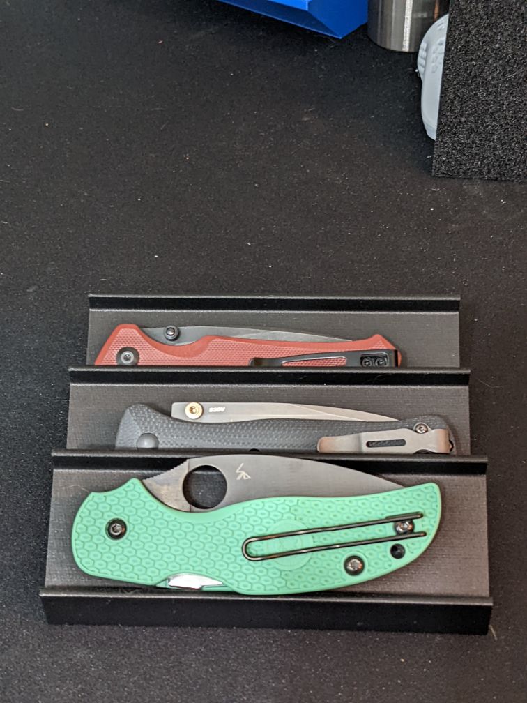 Het rek is universeel ontworpen om de meeste standaard zakmessen te bevatten, waardoor het een veelzijdige keuze is voor zowel verzamelaars als dagelijkse gebruikers die orde en een overzicht willen.