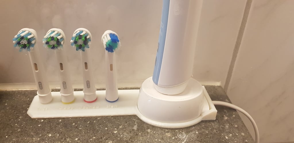 Dit functionele statief biedt een eenvoudige en stijlvolle oplossing om je Oral-B opzetborstels en je Braun tandenborstellader geordend te houden. Het ontwerp is minimalistisch en discreet, waardoor het een esthetische toevoeging is aan elke badkamer. Het statief helpt je om je opbergbehoeften voor mondhygiëne op een overzichtelijke manier te organiseren, zodat je gemakkelijk de juiste opzetborstel kunt vinden en de oplader op zijn plaats kunt houden. De verbeterde constructie zorgt voor een robuuste en duurzame oplossing die een optimale pasvorm biedt voor je opzetborstels en oplader. Dankzij de duidelijke markering van de afzonderlijke plaatsen is het gemakkelijk om de opzetborstels van het gezin te identificeren en te scheiden.