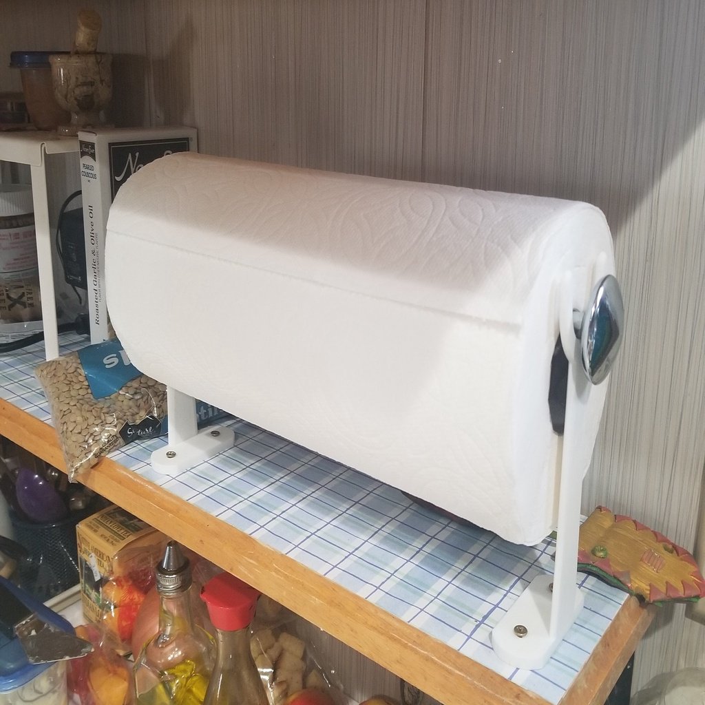 Deze papieren handdoekhouder is een praktische oplossing voor het opbergen van keukenpapier, ontworpen om vrij op een aanrecht of werkbank te staan. Het is ideaal als u gemakkelijk toegang wilt tot papieren handdoeken zonder gaten in nieuwe kasten of tegels te hoeven boren.