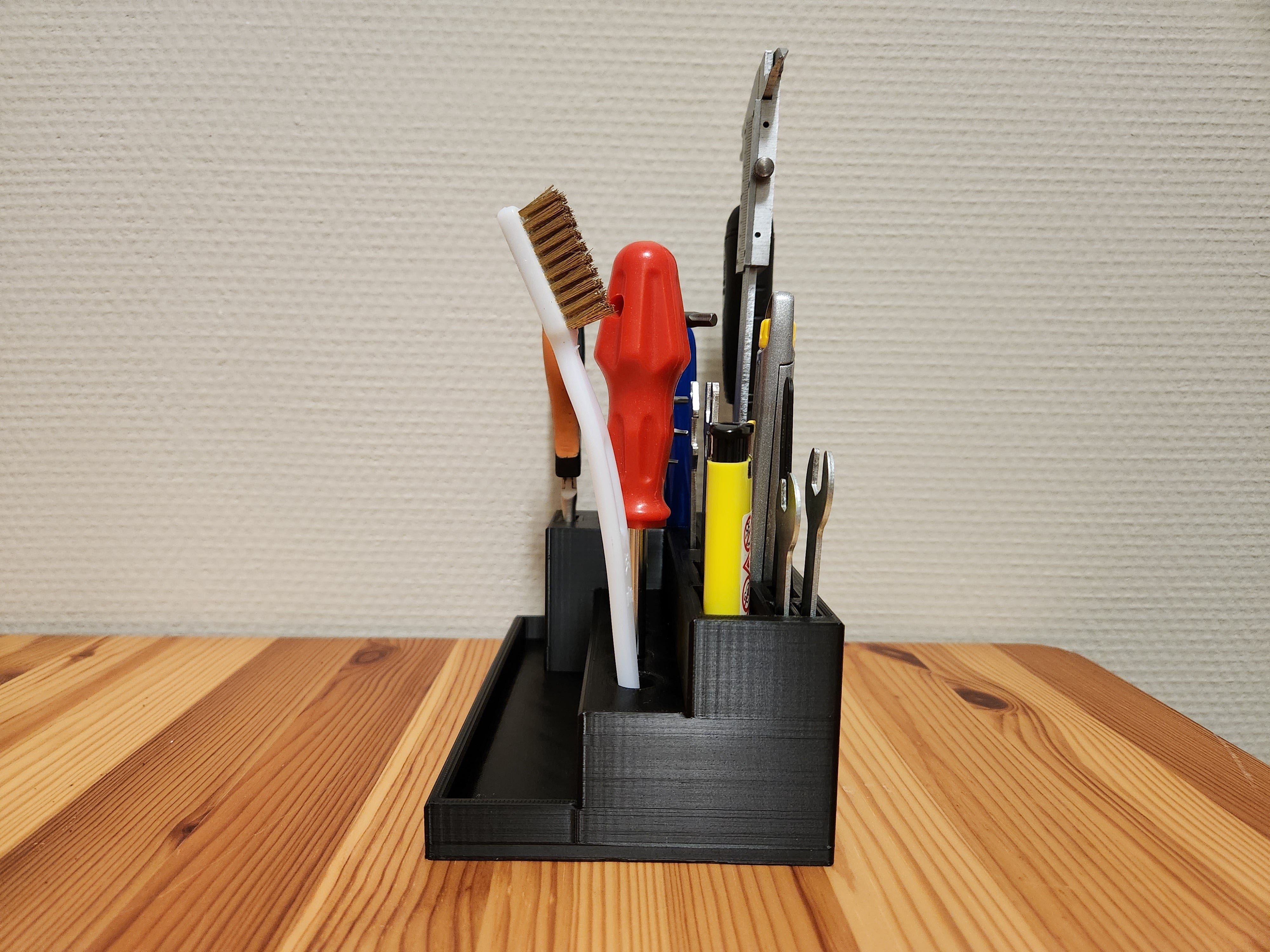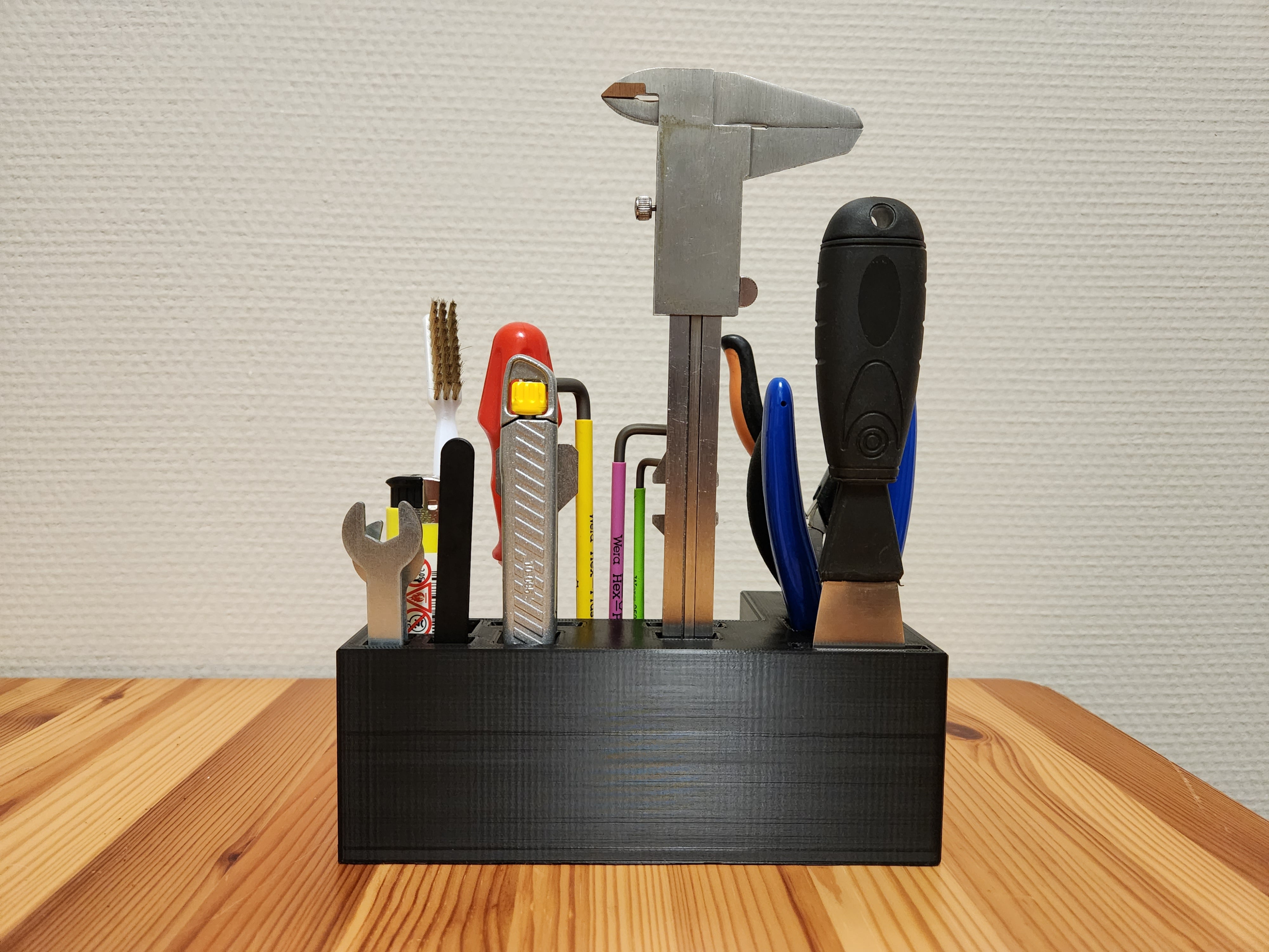 Deze gereedschapshouder is ontworpen om een overzichtelijke opbergoplossing te bieden voor uw essentiële 3D-printergereedschap. Het helpt om uw werkruimte netjes en georganiseerd te houden, zodat u gemakkelijk de benodigde apparatuur kunt vinden tijdens het printen of onderhoud.