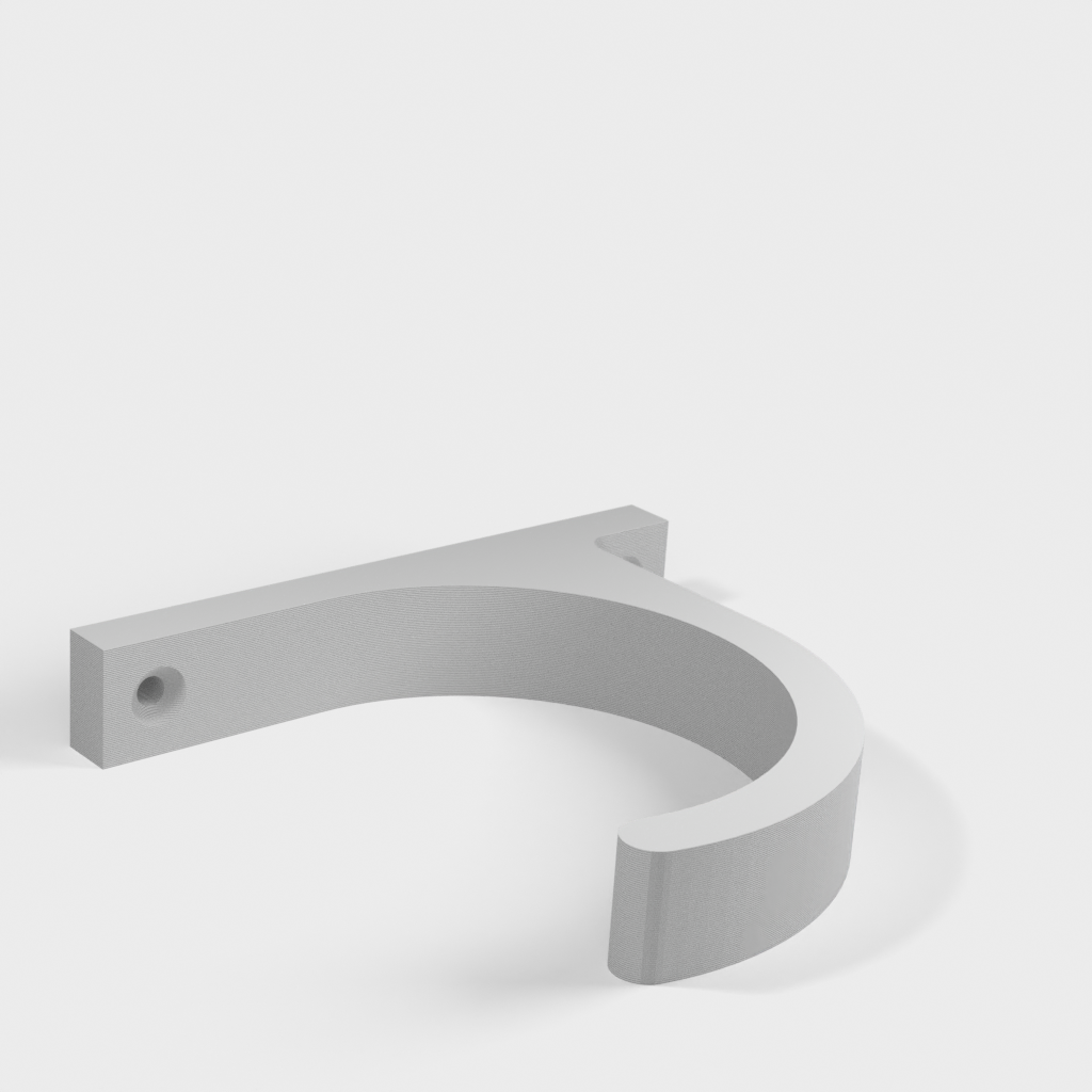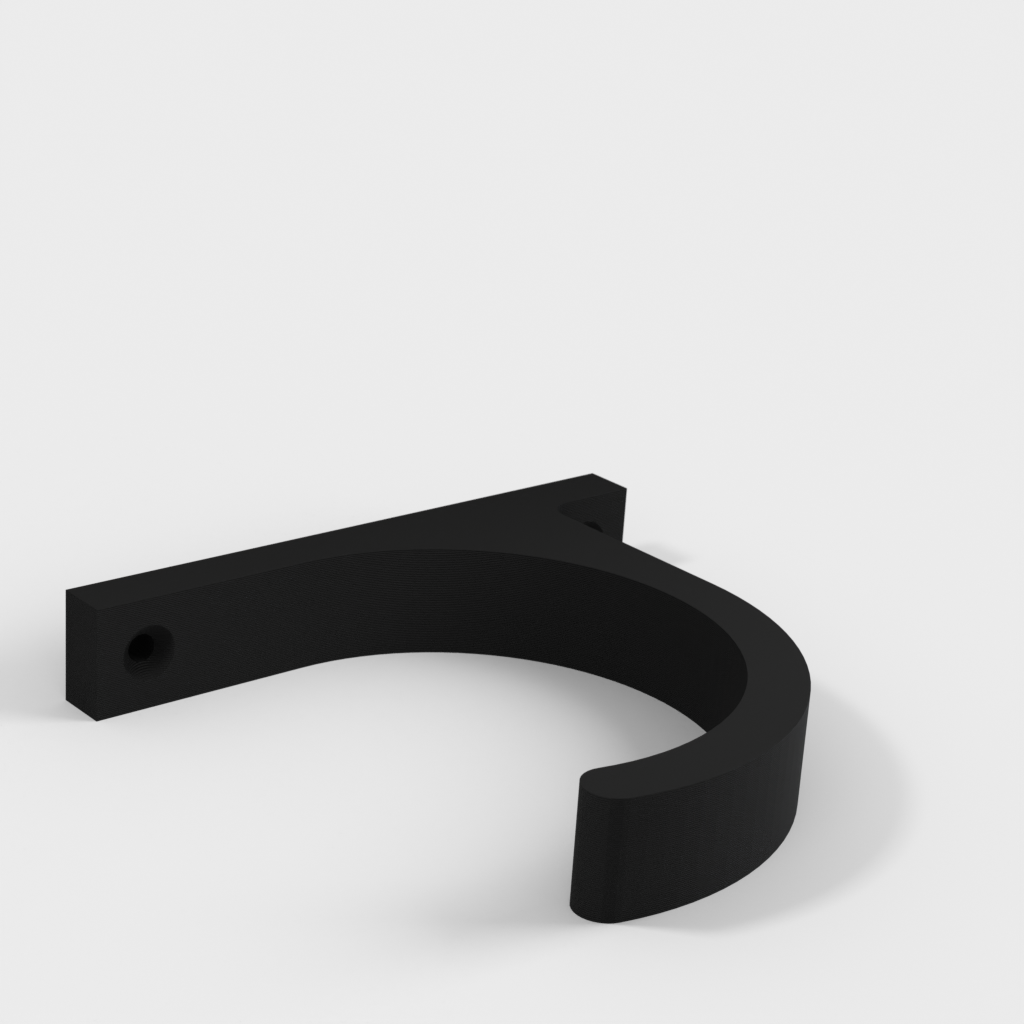 Deze PVC-buisophanging is ontworpen om een stofzuigerslang van 4 inch (ca. 10 cm) of een vergelijkbare buis veilig aan de muur te bevestigen. Het ontwerp zorgt voor een pasvorm die de buis stabiel houdt, zonder dat deze te strak zit, waardoor eenvoudig in- en uitnemen mogelijk is. De ophanging draagt bij aan een georganiseerde opslag van buizen, vooral in werkplaatsen of soortgelijke omgevingen waar ruimteoptimalisatie wenselijk is.