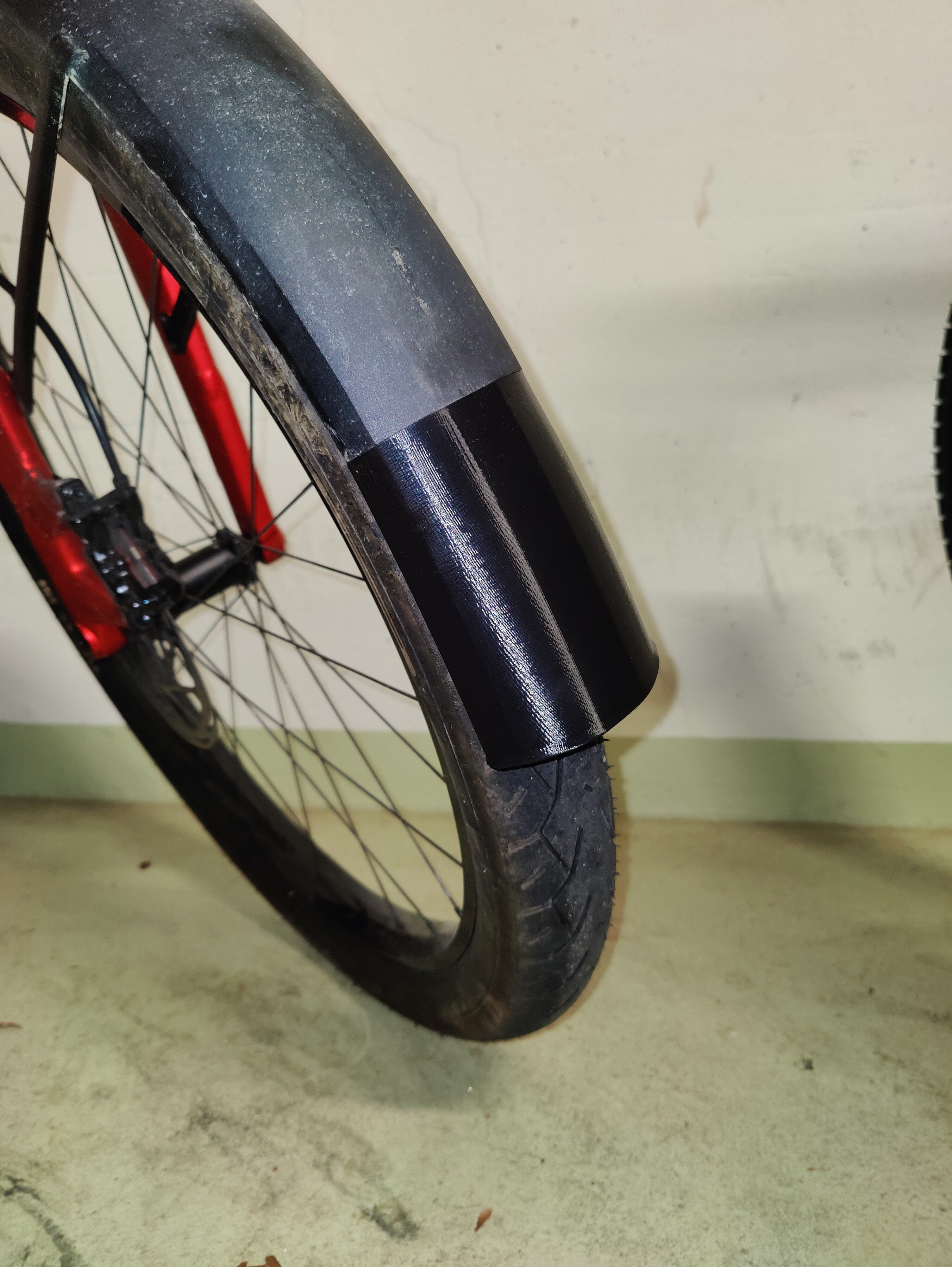 De verlenging voegt 8 cm toe aan het voorspatbord van je fiets en is 1 cm breder aan de onderkant, waardoor de bescherming tegen opspattend water wordt geoptimaliseerd. De constructie, die uit drie delen bestaat, is eenvoudig te monteren en vormt een robuuste eenheid. In tegenstelling tot standaardonderdelen die er gewoon op klikken, wordt deze verlenging veilig met schroeven bevestigd, waardoor hij onder alle rijomstandigheden op zijn plaats blijft. De bestaande gaten in het voorspatbord van de fiets kunnen worden gebruikt voor een eenvoudige en ongecompliceerde installatie.
