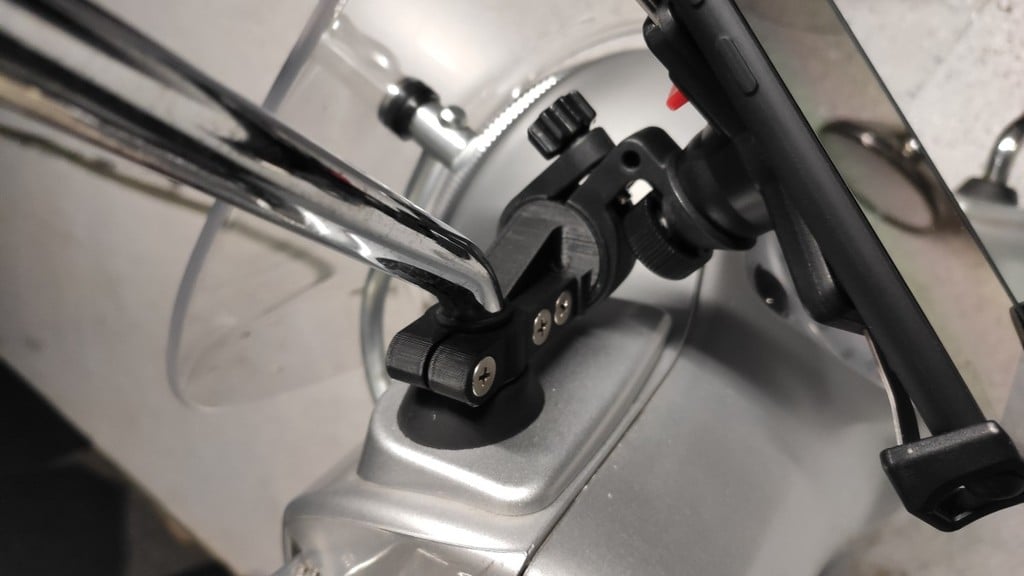 Deze telefoonhouderadapter is ontworpen om uw smartphone veilig te bevestigen aan uw Vespa GTS, inclusief modellen zoals de GTS 250. Hij kan gemakkelijk op de spiegelbasis (14,5 mm) worden gemonteerd zonder dat de spiegel zelf tijdens de installatie hoeft te worden verwijderd, waardoor het proces snel en eenvoudig is. Om een stabiele en gemakkelijk los te koppelen grip op uw apparaat te garanderen, kan een rubberen tussenlaag tussen de adapter en de spiegelhouder worden geplaatst, wat helpt om trillingen tijdens het rijden te minimaliseren.
