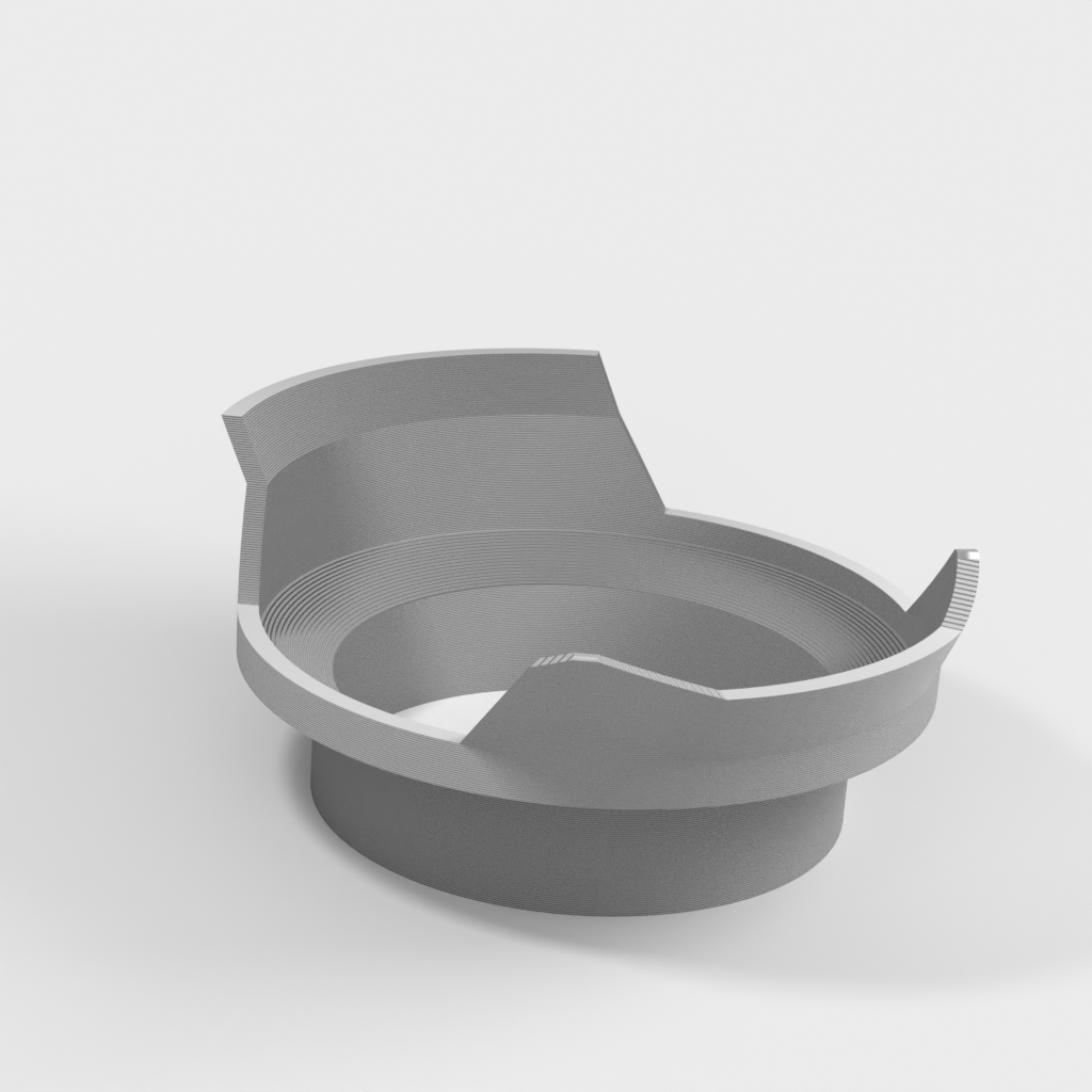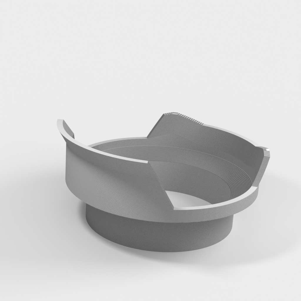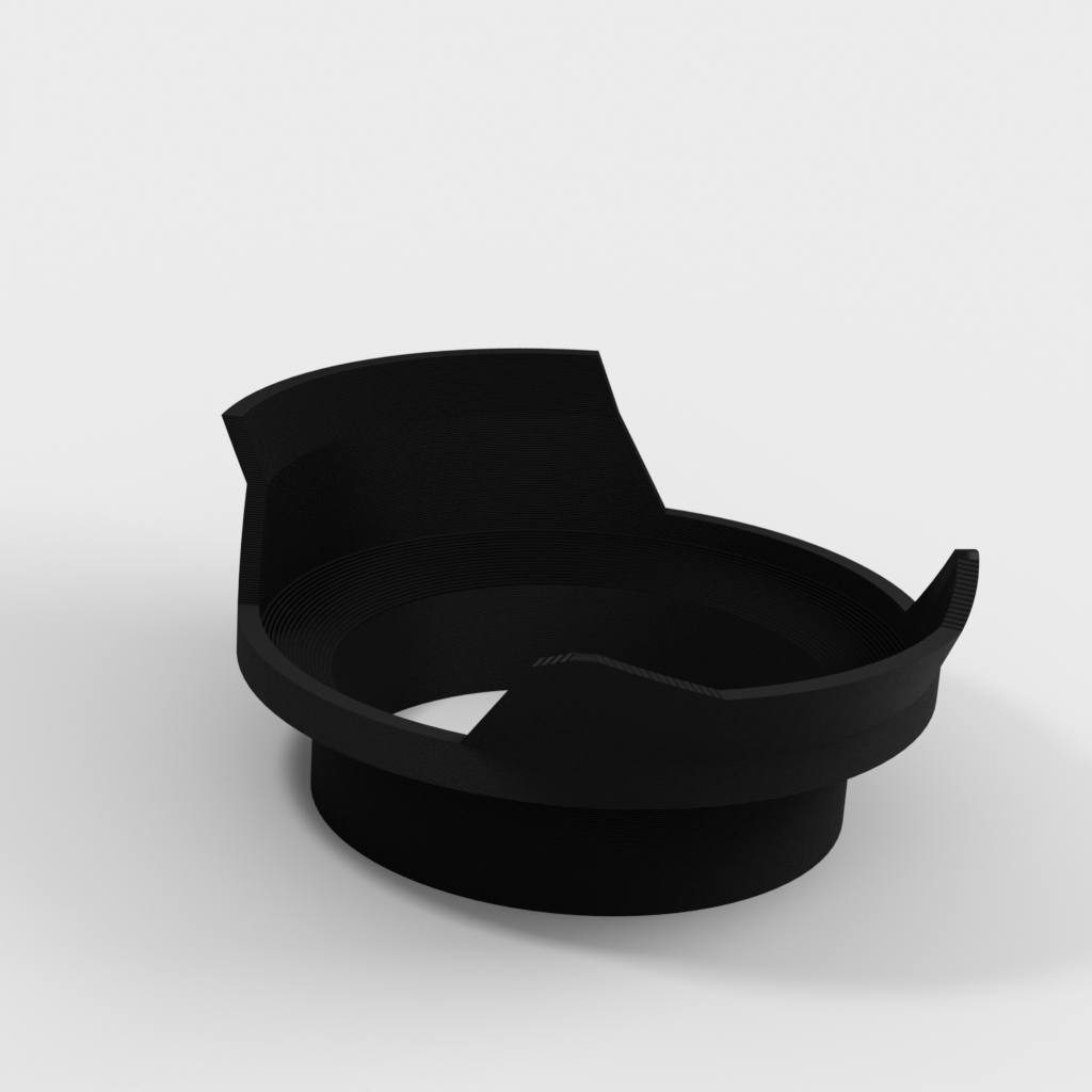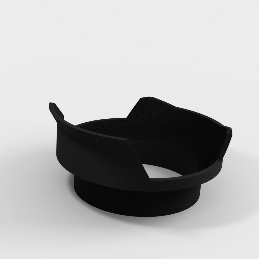 De montage is eenvoudig met een frictiepasvorm, die ervoor zorgt dat het schild stevig op zijn plaats zit zonder het gezichtsveld van de camera te bedekken. Mocht de pasvorm los aanvoelen, dan kan een minimale aanpassing van de maat (bijvoorbeeld in stappen van 1%) nodig zijn, vooral bij materialen die de neiging hebben te krimpen na het printen.