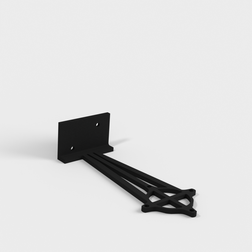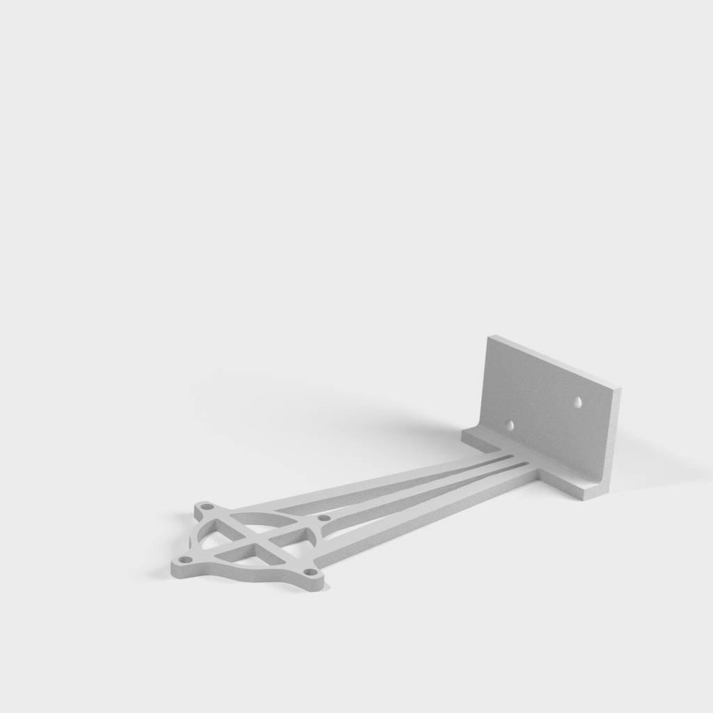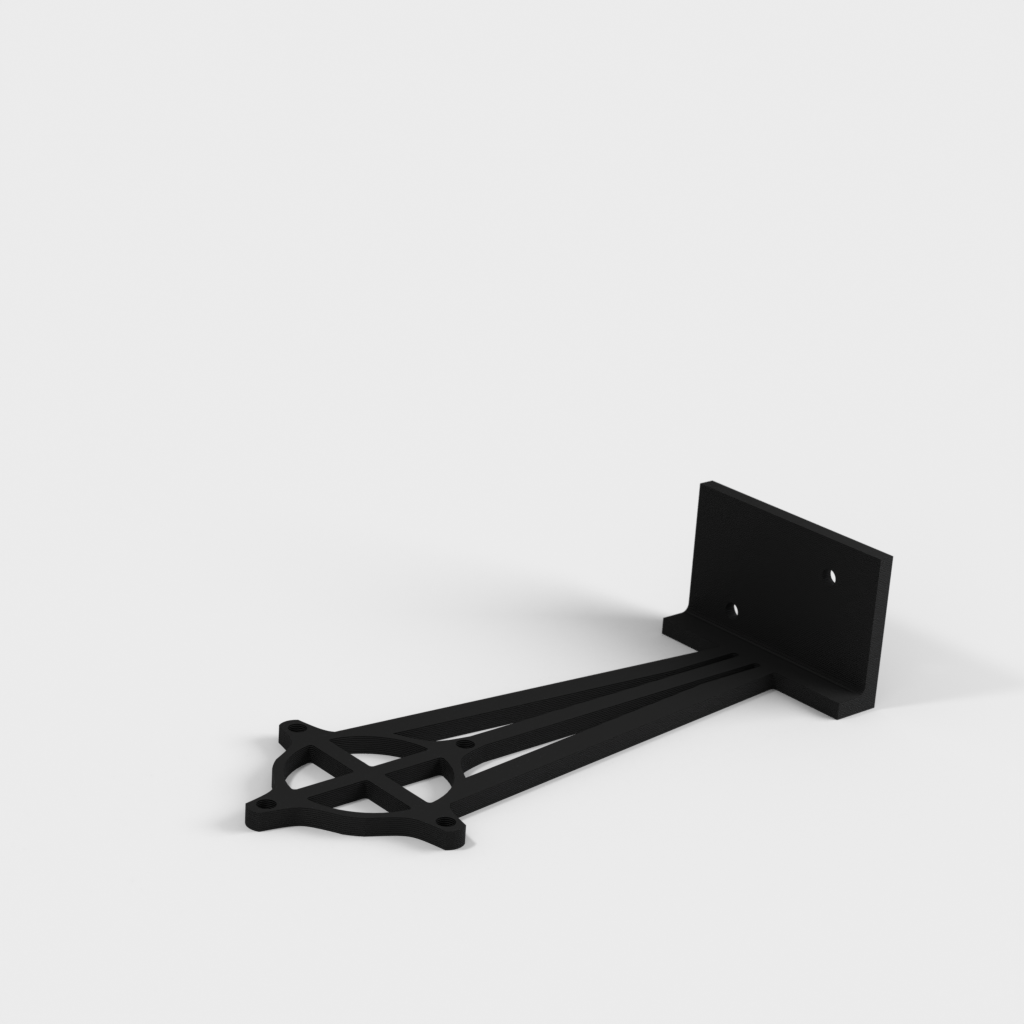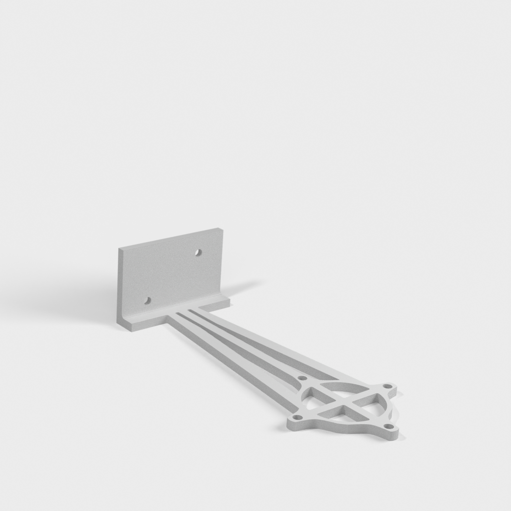 Om de beugel te monteren, gebruikt u M4-moeren en -bouten om hem aan uw bestaande Unifi-montage te bevestigen. Daarna kan de complete set eenvoudig aan de muur worden bevestigd met behulp van houtschroeven of iets dergelijks. Het wordt aanbevolen om PETG-materiaal te gebruiken voor deze beugel, omdat Unifi-toegangspunten warmte kunnen genereren. PETG is een robuust materiaal dat bestand is tegen vervorming bij hogere temperaturen, waardoor een stabiele en duurzame oplossing voor uw netwerkopstelling wordt gegarandeerd.