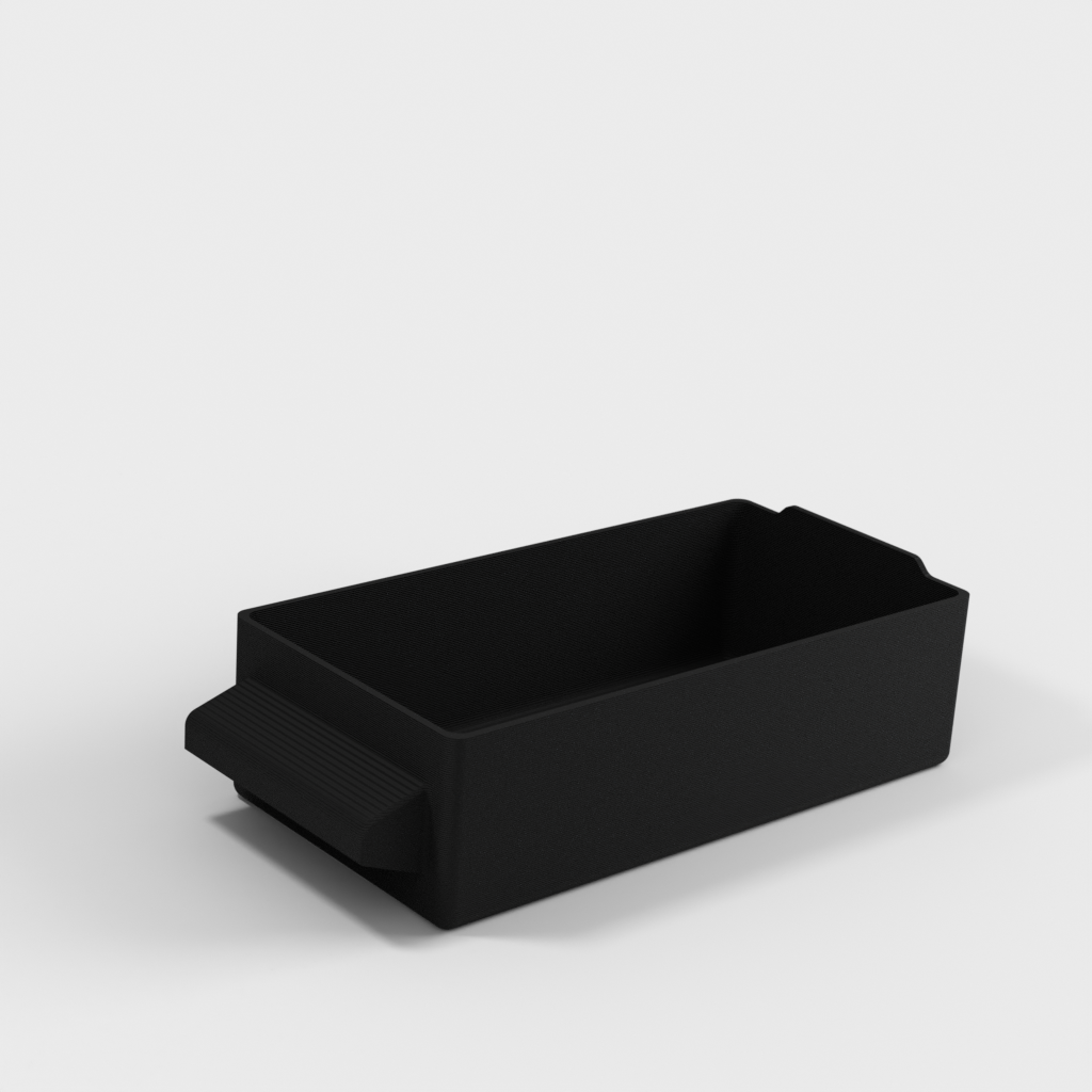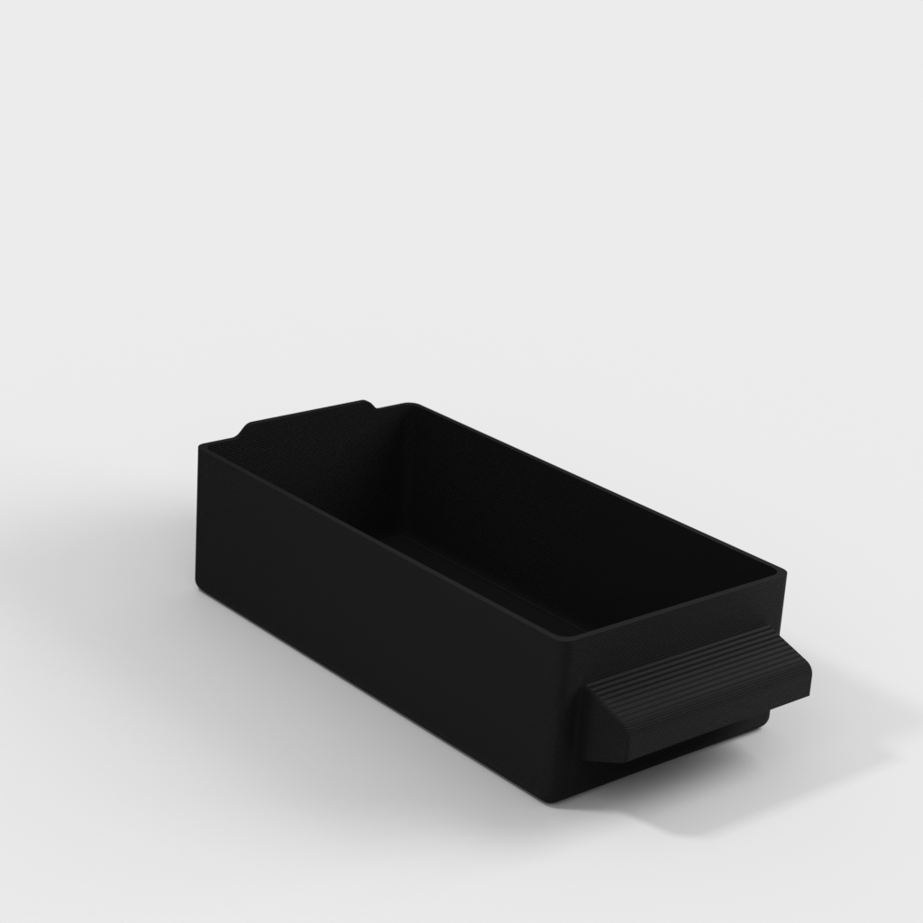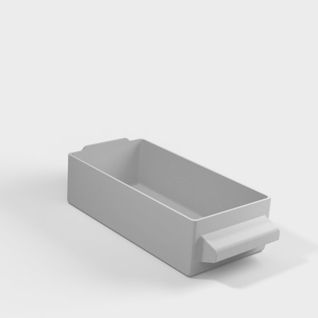 Met buitenafmetingen van ongeveer 128x36x65 mm is de lade geschikt voor efficiënt ruimtegebruik. Het is een functionele toevoeging voor diegenen die op zoek zijn naar een gestructureerde opslagoplossing voor kleine onderdelen in de werkplaats, hobbykamer of kantoor.