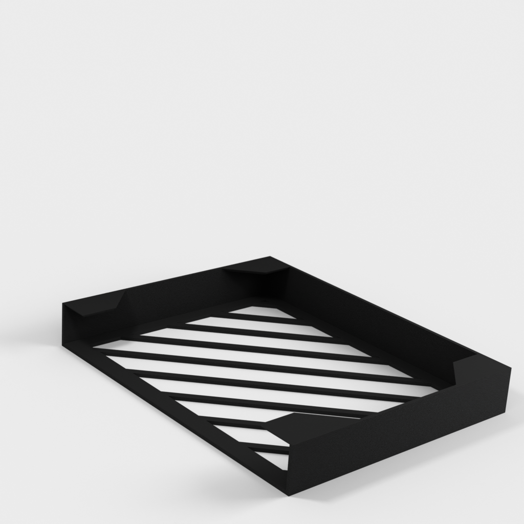 Deze praktische papierhouder is ontworpen om te helpen bij het creëren van orde en organisatie in uw huis of kantoor. Het is ideaal voor het opbergen van belangrijke documenten, brieven of notities, en draagt bij aan het netjes en efficiënt houden van uw werkplek.