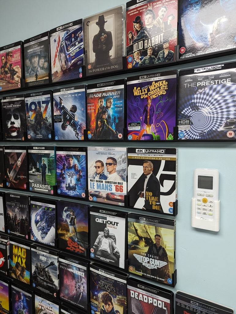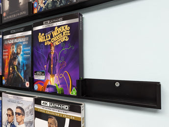De wandhouder is gedimensioneerd om te passen op standaard Blu-ray 4K-hoesjes (135mm x 170mm x 15mm) en biedt tegelijkertijd een beetje flexibiliteit voor hoesjes met papieren sleeves. Met een intelligent vergrendelingssysteem kunnen meerdere apparaten worden aangesloten, waardoor je hoesjes in een mooie en rechte rij hangen zonder te vervormen.