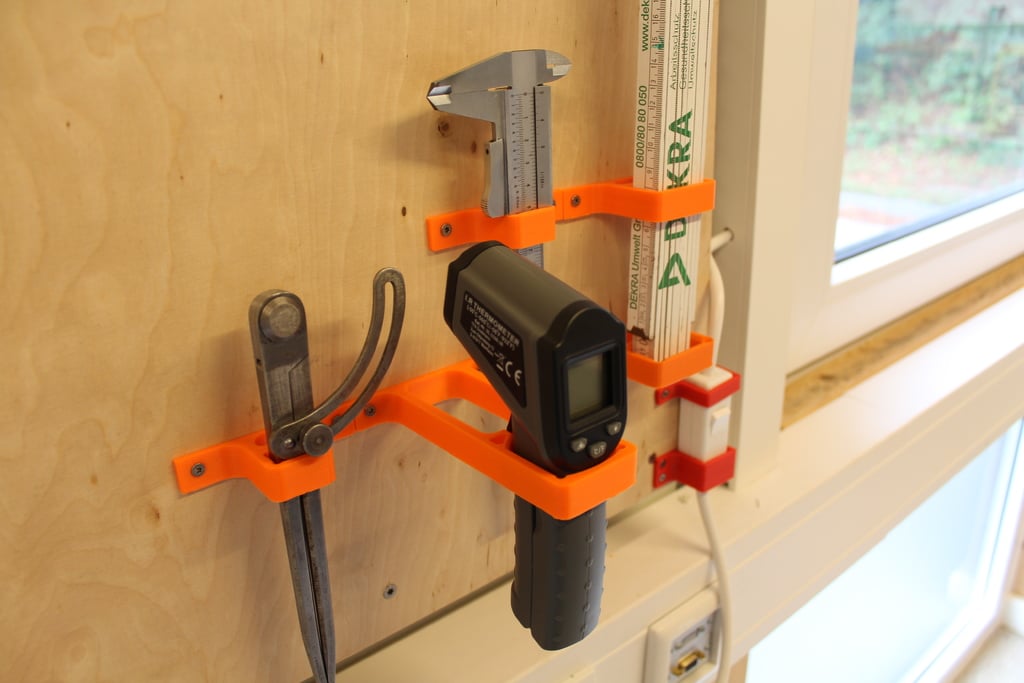 Als een integraal onderdeel van het 'Ideenreich tool wall'-systeem ondersteunt deze wandbeugel een efficiënte organisatie van uw gereedschap in zowel werkplaatsen, FabLabs als makerspaces. Een georganiseerde muur vermindert verspilde tijd en verhoogt de productiviteit door belangrijk gereedschap zoals uw infraroodthermometer overzichtelijk te plaatsen.
