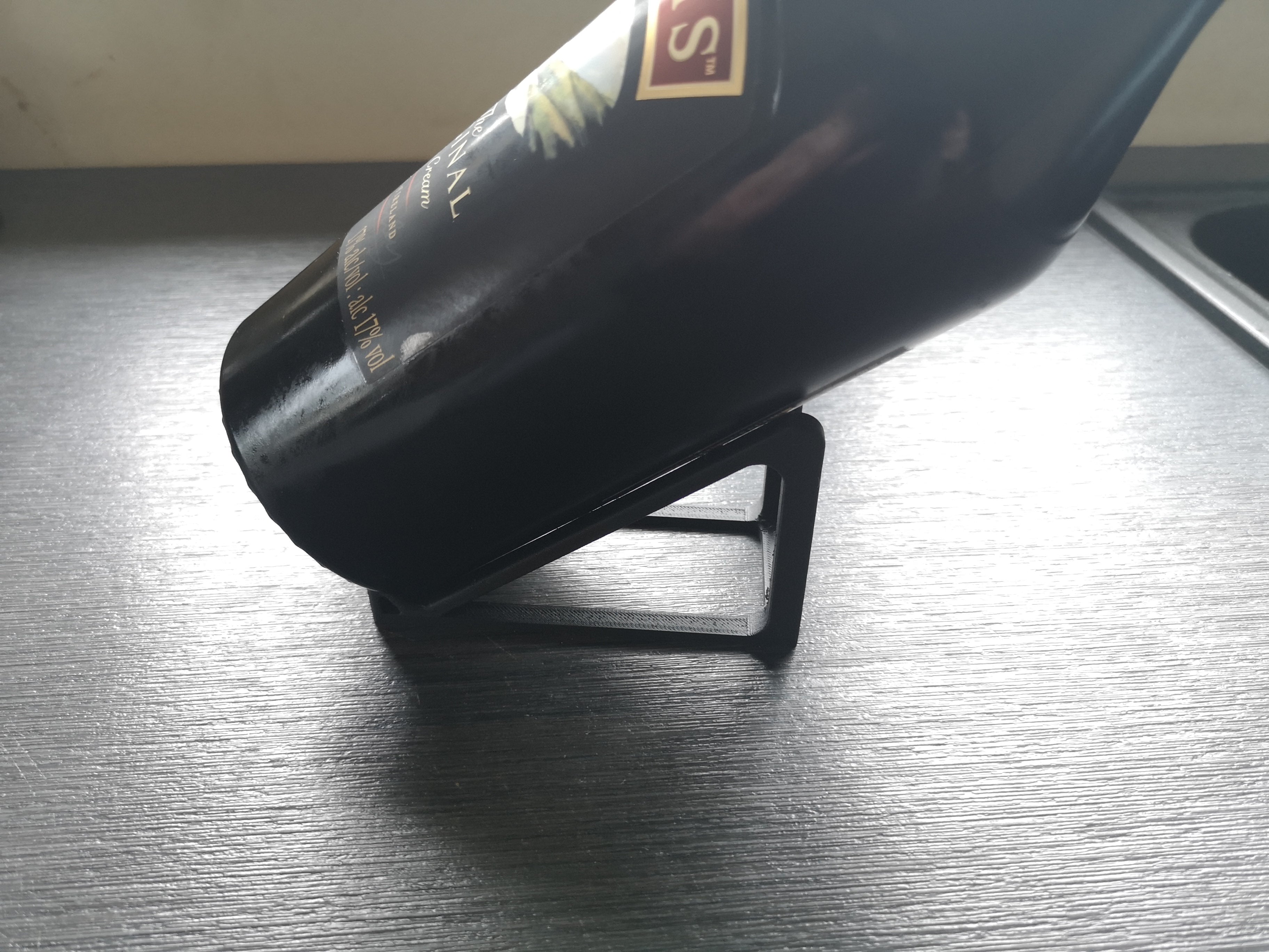 Dit display is ontworpen om uw flessen op een unieke en stijlvolle manier te presenteren. De fles wordt in een hoek van 35° geplaatst, wat de inhoud benadrukt zonder dat het display de aandacht trekt. Het ontwerp is bewust minimalistisch en discreet om de fles de belangrijkste focus te laten zijn.