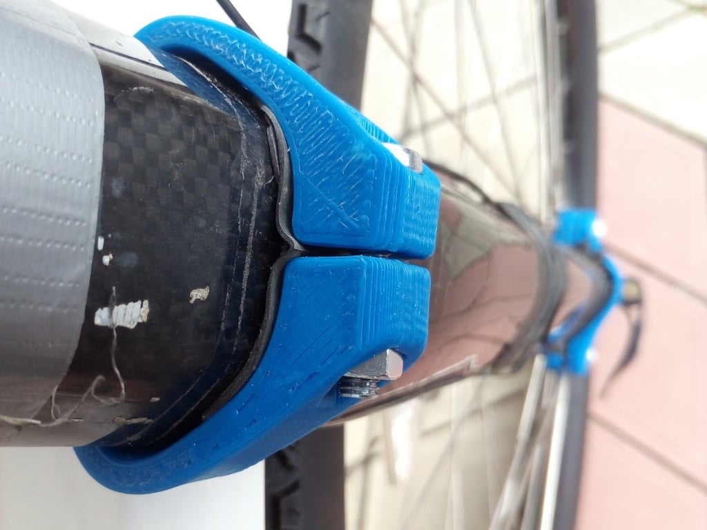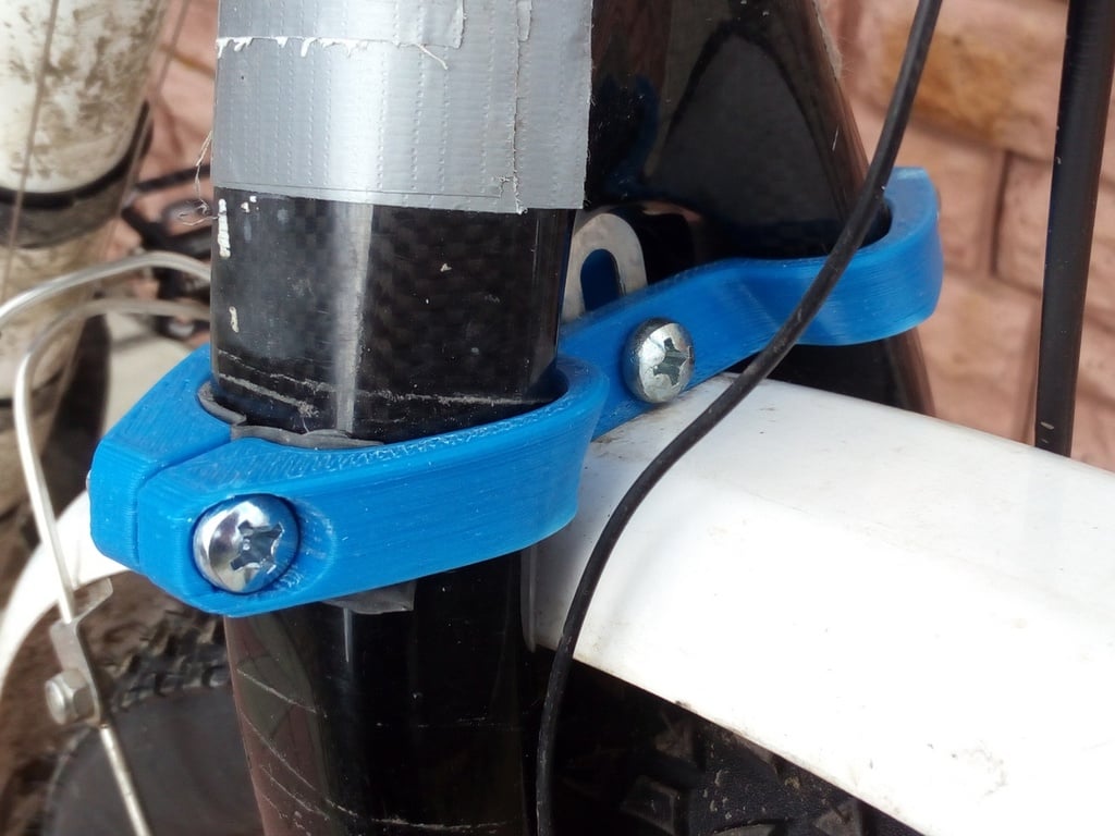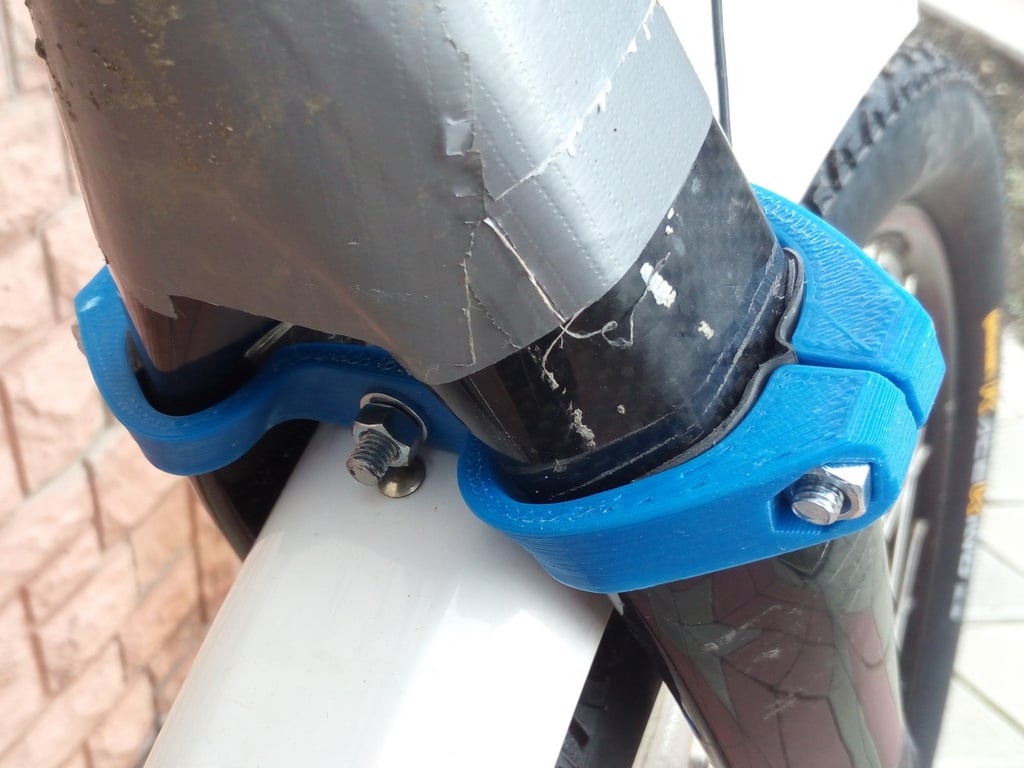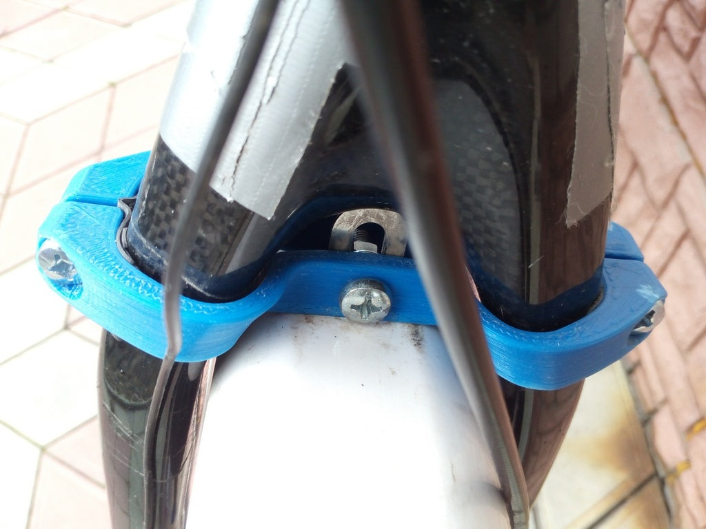 Eenvoudige en betrouwbare spatbordhouderklem voor het monteren van een volledig spatbord op een 29er MTB met carbon voorvork. Ontworpen om op vele soorten carbon vorken te passen en een stabiele en robuuste montage te bieden.