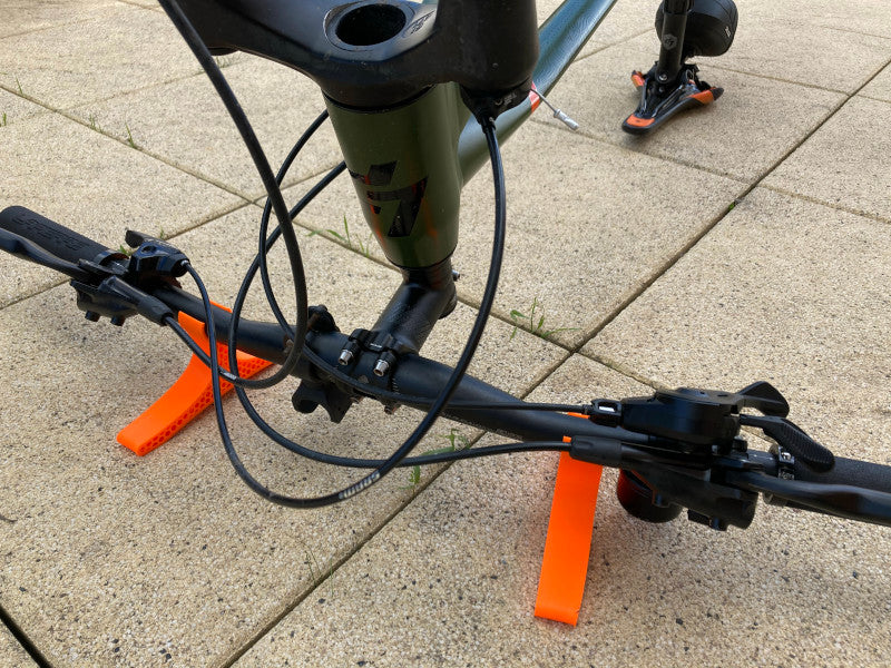 Het rek wordt op het stuur van de fiets gemonteerd en maakt het mogelijk om de fiets gemakkelijk om te keren, zodat u volledige toegang heeft tot alle componenten. Het is compatibel met sturen met een diameter van 23 mm, wat een stabiele en veilige bevestiging tijdens het werk garandeert.