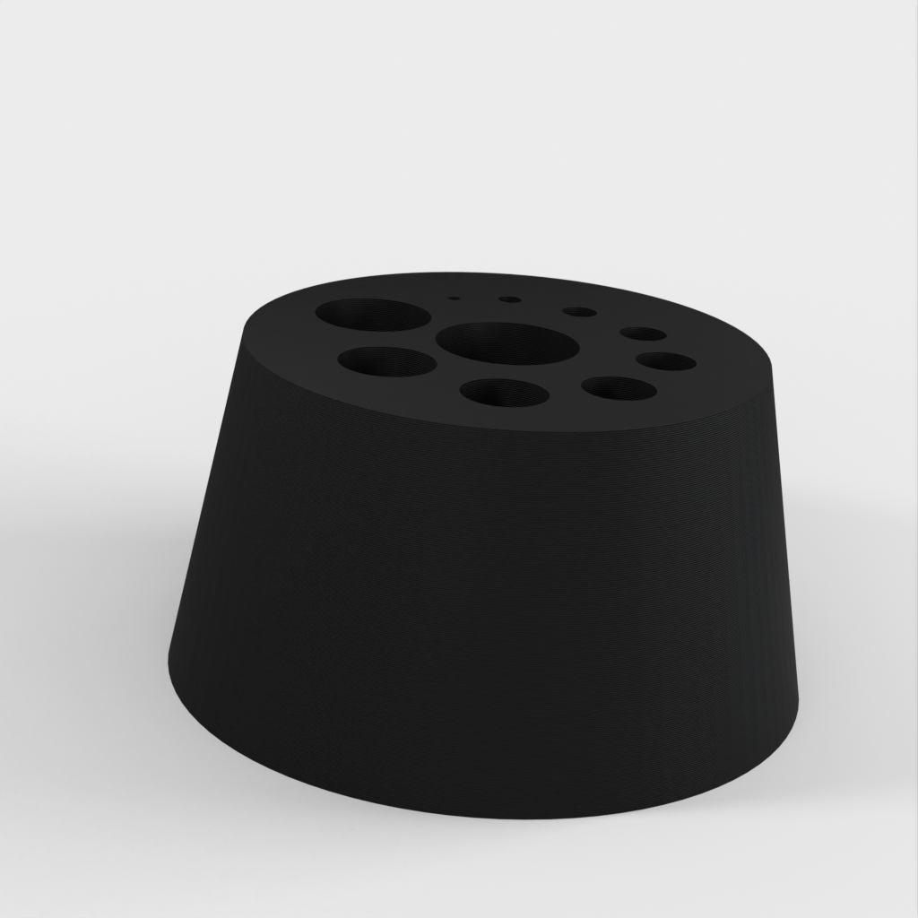 Dit is een boorgeleider voor het boren van nauwkeurige gaten van 90 graden tegen een vlak oppervlak. Het is geschikt voor boringen van 1, 2, 3, 4, 6, 8, 10 en 12 mm. Met deze geleider boort u eenvoudig en snel met exacte precisie.