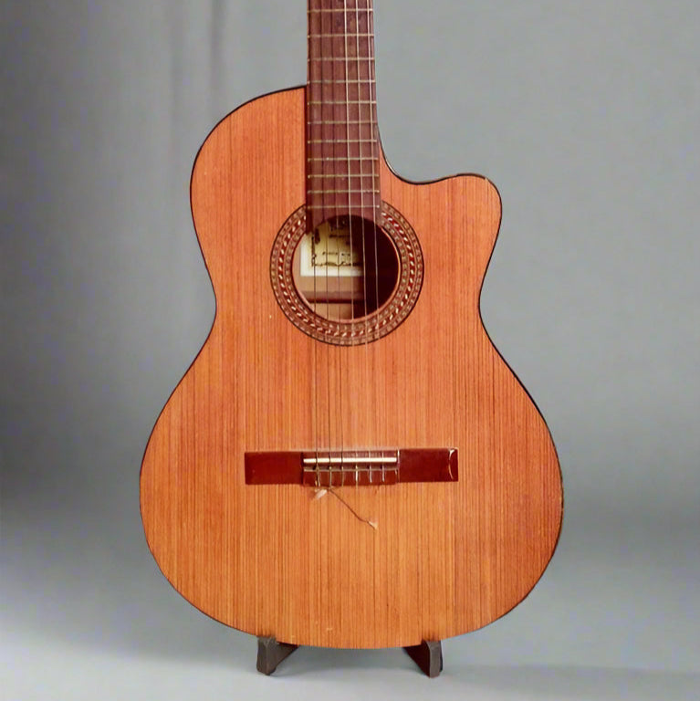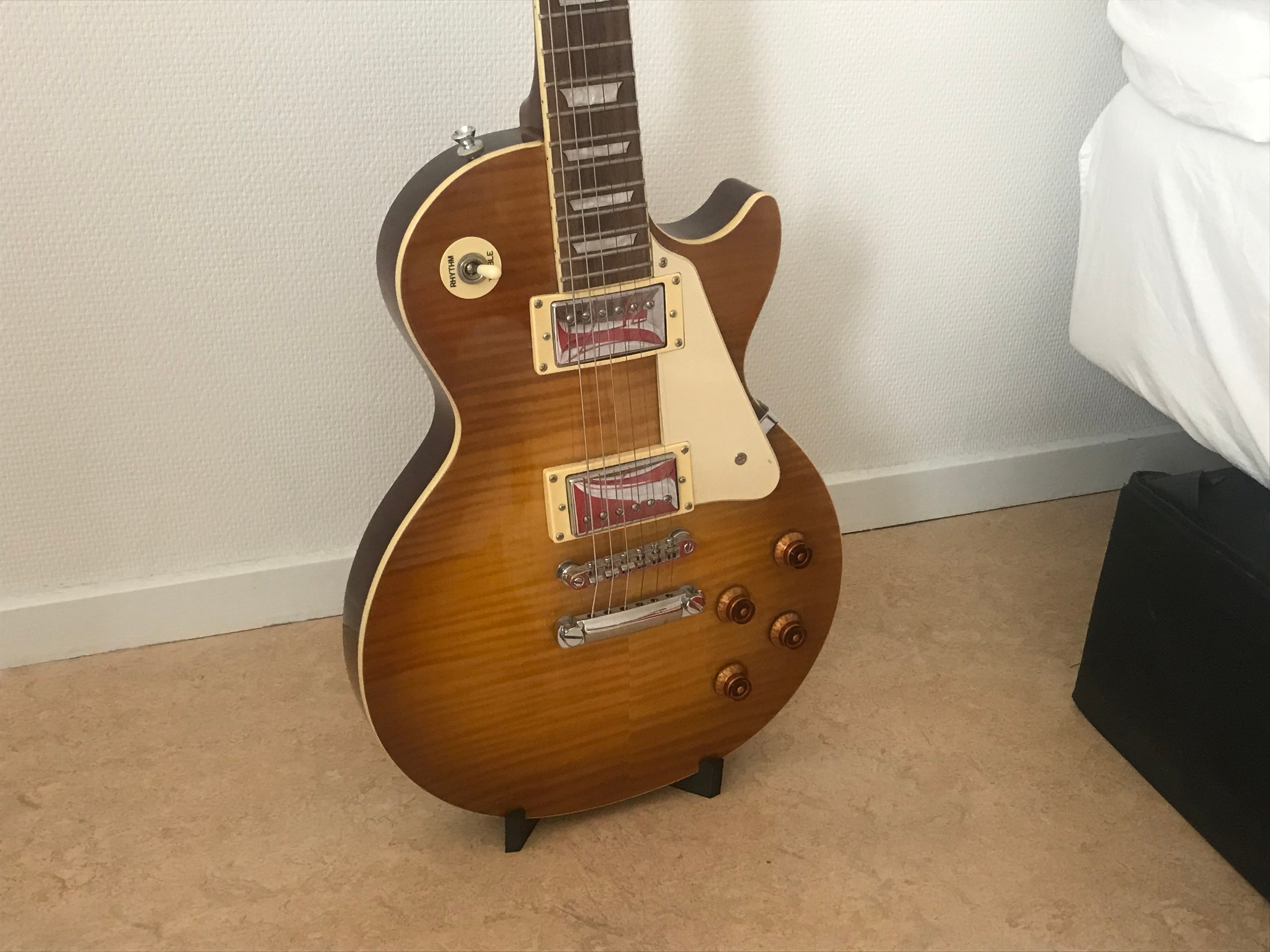 Dit is een standaard voor een akoestische gitaar. Met deze standaard kunt u uw gitaar in een hoek van de kamer plaatsen en hem gemakkelijk weer oppakken.
